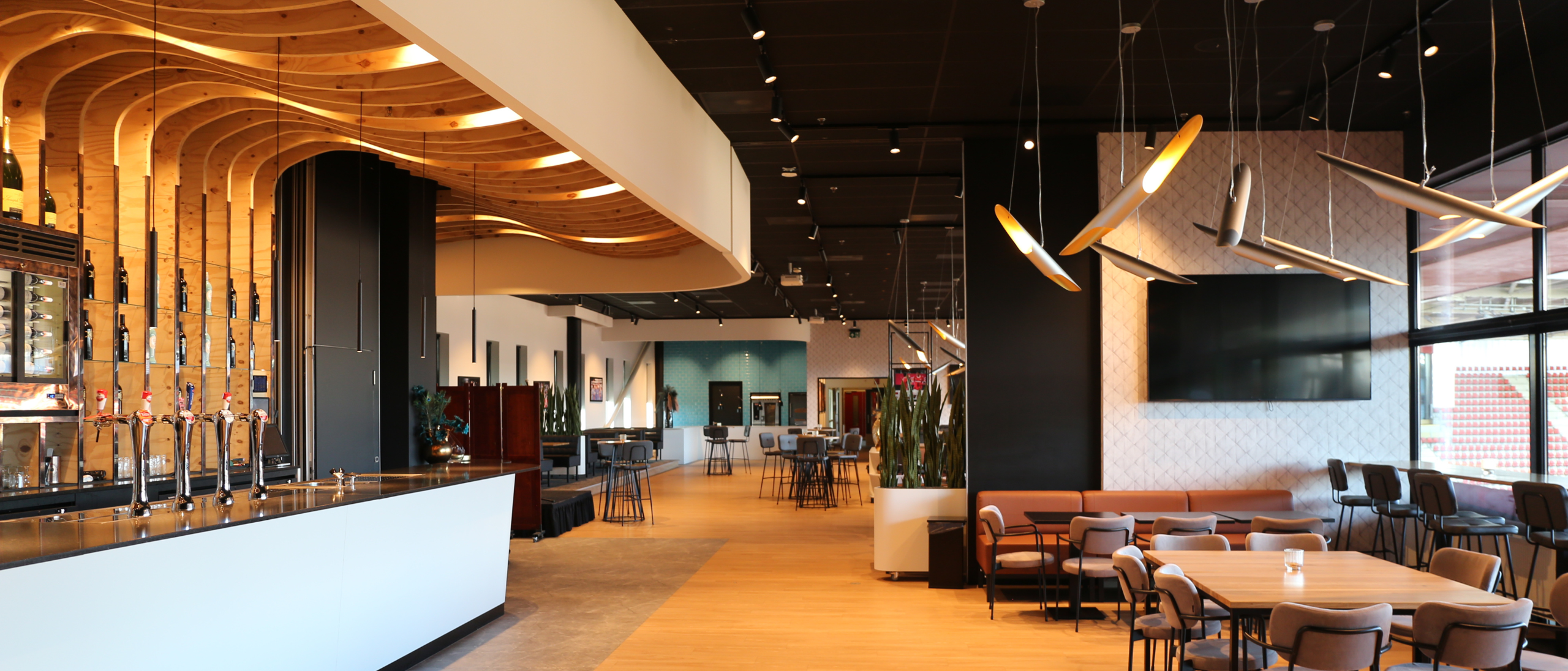 De langgerekte lounge heeft een capaciteit tot 200 personen en is dé ideale plek om een receptie of feest te organiseren. De zaal is eventueel ook geschikt voor een bijeenkomst in combinatie met een borrel of buffet. De ruimte beschikt over een royale bar, houten statafels en luxe barkrukken wat zorgt voor een informele en gezellige sfeer. Daarnaast beschikt de zaal over vijf Tv-schermen, een eigen gaderobe en toiletten in de nabije omgeving.