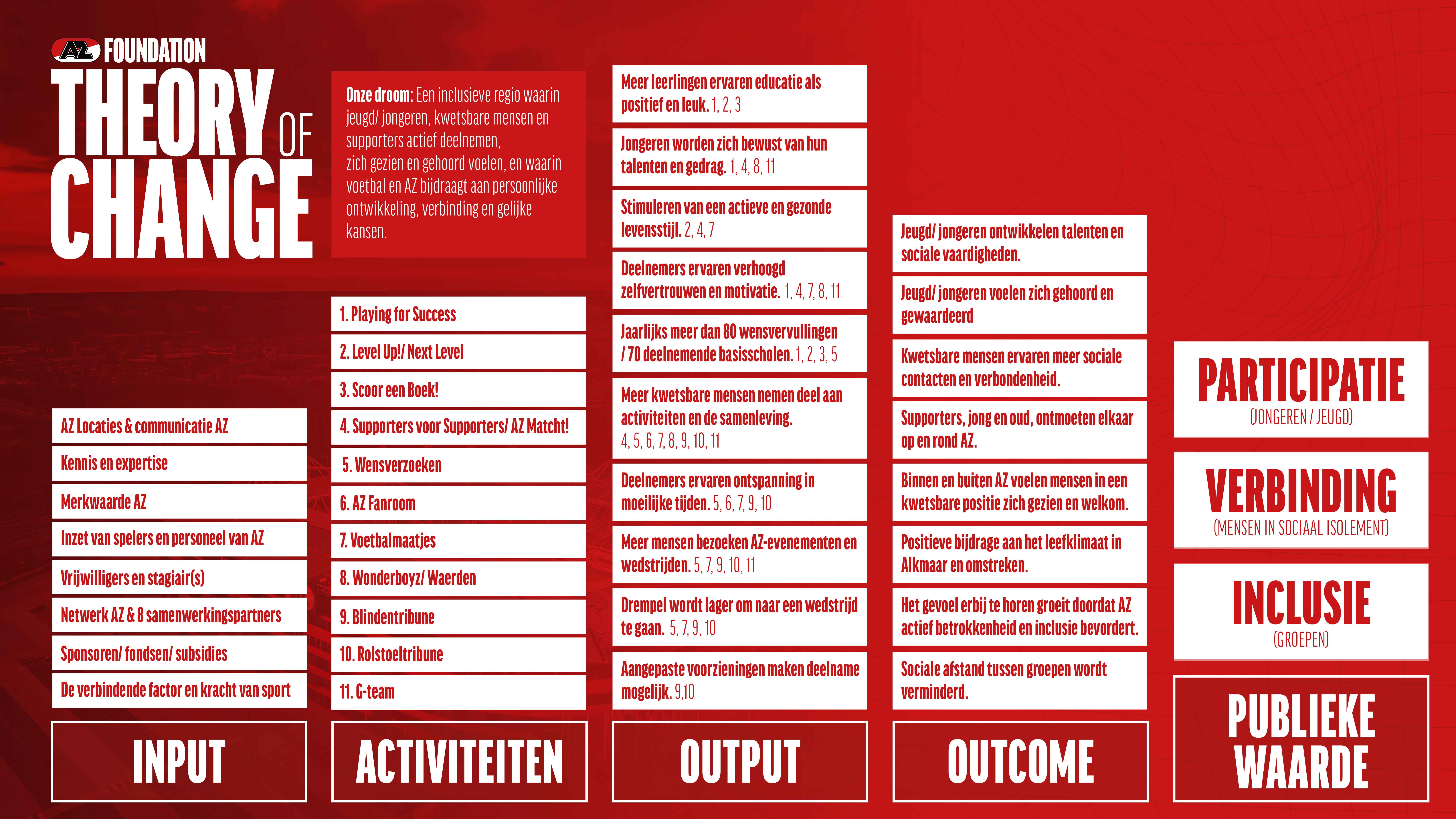 - Verbinding; In een samenleving waar mensen op zoek zijn naar saamhorigheid zorgt het betaald voetbal voor verbinding. AZ inspireert, enthousiasmeert en verbindt mensen.