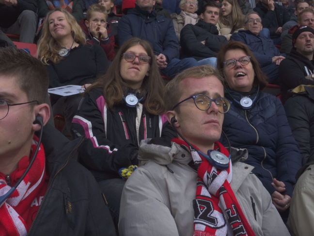 Visueel beperkte mensen in het stadion krijgen via een speciale headset live verslag van de thuiswedstrijden van AZ. Door de verslaggeving ervaren ze de wedstrijd en eveneens de sfeer in het stadion. Op deze manier is voetbal beschikbaar voor iedereen.