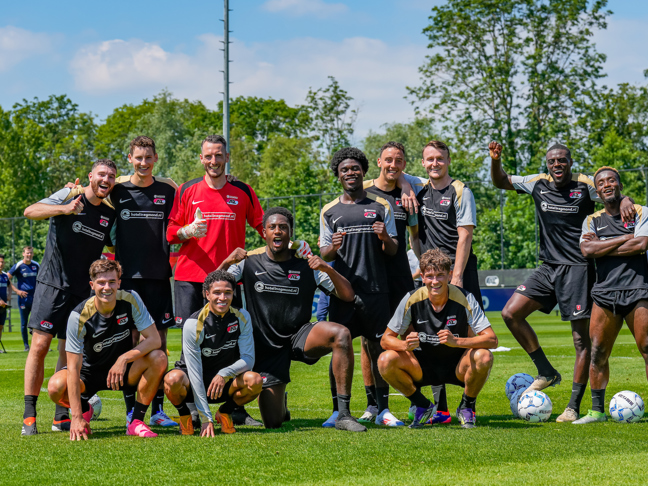 ZAANSTAD- AZ heeft maandag de eerste training van het nieuwe seizoen afgewerkt. Op een zonnig AFAS Trainingscomplex keerden de mannen van trainer Maarten Martens en zijn staf terug van vakantie en gingen zij van start met de voorbereiding. De training in beeld. (Foto's: Ed van de Pol)