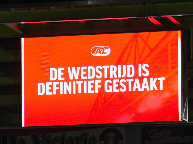 ALKMAAR- Het restant van het duel AZ - NEC Nijmegen wordt uitgespeeld op woensdag 6 december om 19:00 uur. Dat maakte de KNVB donderdagochtend bekend. De wedstrijd wordt hervat in de 90e minuut met 1-2 op het scorebord. De wedstrijd was gestaakt nadat Bas Dost op het veld bleef liggen en medische hulp nodig had.
