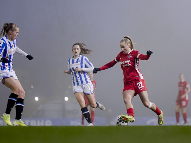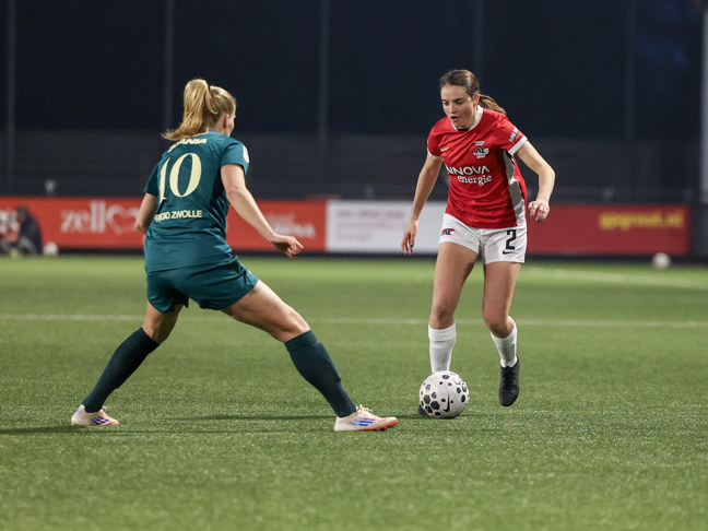 HEERENVEEN- De AZ Vrouwen verloren zondagavond nipt van sc Heerenveen. In Friesland kwam de ploeg van trainer Wouter de Vogel tot tweemaal toe terug van een achterstand, maar slaagde er uiteindelijk niet in een nederlaag te voorkomen: 3-2. De Alkmaarse doelpunten kwamen op naam van Sabrine Ellouzi en Maudy Stoop.