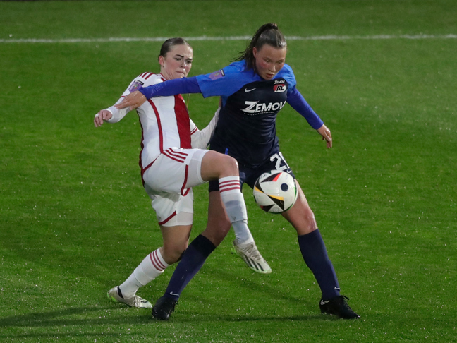 AMSTERDAM- De AZ Vrouwen gingen donderdagavond onderuit op bezoek bij Ajax. Op Sportpark De Toekomst eindigde een regenachtige avond in 3-0 voor de Amsterdammers. Aan Alkmaarse zijde maakte keepster Netty Booms haar debuut in de Azerion Vrouwen Eredivisie.
