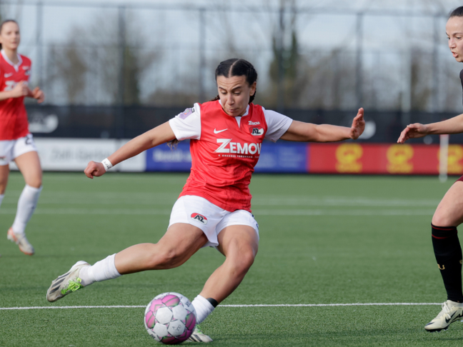 ALKMAAR- De AZ Vrouwen spelen op zaterdag 23 maart tegen FC Twente. Na een afwezigheid van liefst twaalf jaar keert het dameselftal terug in het AFAS Stadion. AZ-verdedigster Karlijn Woons is klaar voor de confrontatie met de huidige koploper van de Azerion Vrouwen Eredivisie. ''De wedstrijd waar we allemaal het hele jaar naar uitkijken.''