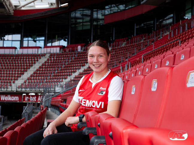 ALKMAAR- Mirte van Bentum heeft haar eerste profcontract bij AZ getekend. In het AFAS Stadion zette de AZ Vrouwen-speelster donderdagmiddag haar handtekening onder een verbintenis tot medio 2027.