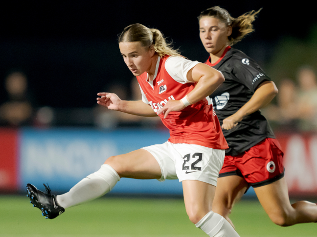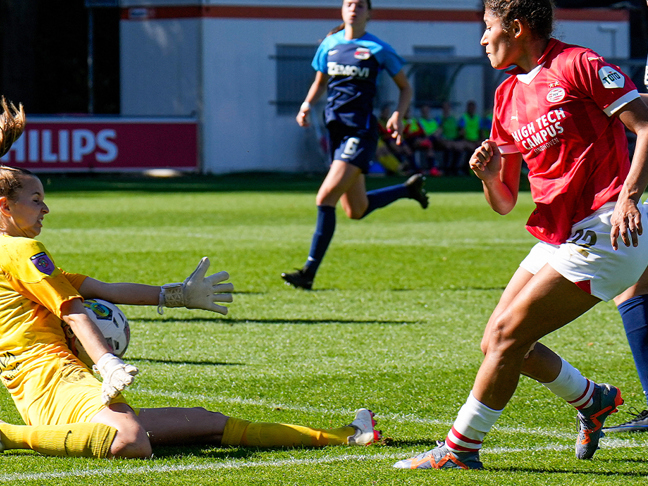 EINDHOVEN- Op een zonovergoten PSV Campus De Herdgang incasseerden de AZ vrouwen zondagmiddag de eerste nederlaag van het seizoen. In Eindhoven waren de PSV Vrouwen met 5-1 te sterk. De enige goal aan Alkmaarse zijde kwam van de voet van Romaissa Boukakar.