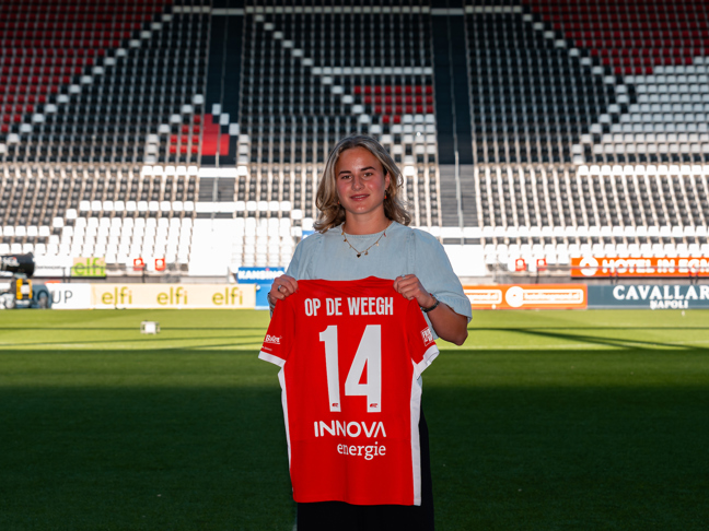 ALKMAAR- Floor Spaan heeft vrijdagmiddag haar handtekening gezet onder een nieuwe verbintenis bij AZ. De 22-jarige spits ligt nu tot medio 2026 vast bij de Alkmaarse club.