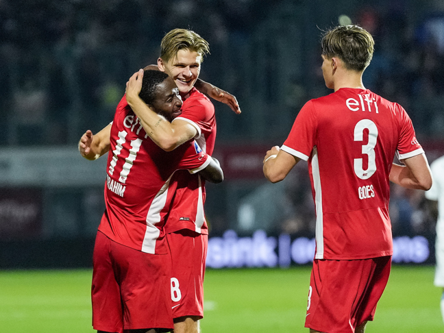 ZWOLLE- AZ behaalde vrijdagavond zijn vijfde competitiezege van het seizoen. In Overijssel werd PEC Zwolle namelijk met 2-1 verslagen. Buitenspeler Ibrahim Sadiq nam beide Alkmaarse doelpunten voor zijn rekening. De wedstrijd in beeld. (Foto's: Ed van de Pol)