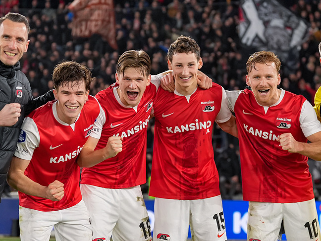 ALKMAAR- AZ heeft zondag een belangrijke overwinning in eigen huis geboekt op Ajax. Dankzij twee doelpunten van Ruben van Bommel werd er met 2-0 gewonnen. De zege in beeld.