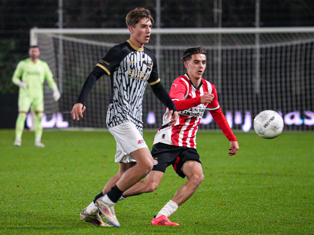 ZAANSTAD- Jong AZ kwam maandagavond niet verder dan een gelijkspel tegen Jong PSV. Op het AFAS Trainingscomplex kwamen de Alkmaarders aanvankelijk op achterstand, maar namen zij aan het begin van de tweede helft de leiding dankzij doelpunten van Elijah Dijkstra en Anthony Smits. Halverwege de tweede helft kwamen de Eindhovenaren echter weer op gelijke hoogte via een benutte strafschop, met een 2-2 gelijkspel als resultaat.