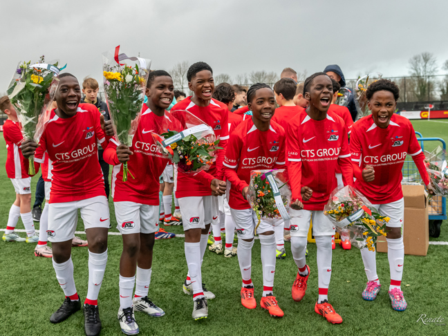 GÖTTINGEN- Voor AZ Onder 19 kwam zondagmiddag een abrupt einde aan de REWE Junior Cup. De Alkmaarders maakten veel indruk tijdens het toernooi en wisten maar liefst acht duels op rij te winnen. In de kwartfinale bleek het Duitse FSV Mainz 05 echter te sterk. AZ-keeper Kiyani Zeggen viel nog wel in de prijzen; hij werd namelijk verkozen tot Doelman van het Toernooi.