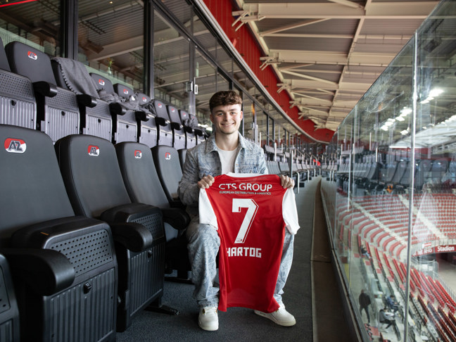ALKMAAR- AZ heeft het doorlopende contract van Jasper Hartog opengebroken en met meerdere jaren verlengd. De zaterdag achttien jaar geworden jeugdspeler ondertekende in het AFAS Stadion een nieuwe overeenkomst tot medio 2028.