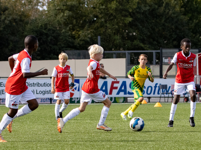ZAANSTAD- Yoël van den Ban is de nieuwste winnaar van de Unibet Goal van de Maand-bokaal. De spits maakte op schitterende wijze met de hak de tussentijdse 5-0 tegen Klaipeda FM in de UEFA Youth League en ontving met die goal de meeste stemmen. Op het AFAS Trainingscomplex nam de spits zijn prijs in ontvangst.