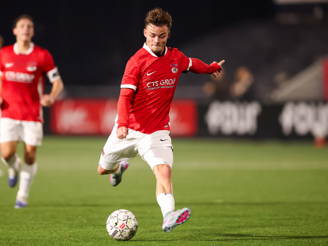 EMMEN- Jong AZ speelde vrijdagavond bij FC Emmen voor speelronde achttien van de Keuken Kampioen Divisie. De Alkmaarders kwamen vroeg op voorsprong dankzij een doelpunt van aanvaller Sem van Duijn en ook Jasper Hartog wist het net te vinden. Na een halfuur spelen kwam de ploeg van Leeroy Echteld echter met tien man te staan. Het duel eindigde in een 4-2 nederlaag.