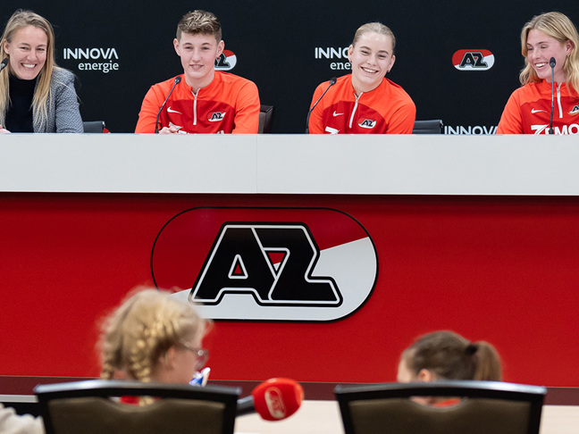 ALKMAAR- Voorafgaand aan de wedstrijd van de AZ vrouwen tegen FC Twente mochten leden van De Waaghalzen & De AllstarZ mee het veld op als spelersescorte, vlaggendrager, middencirkeldoekdrager of ballenkids! De Waaghalzen & De AllstarZ bij de wedstrijd tussen AZ en FC Twente in beeld.