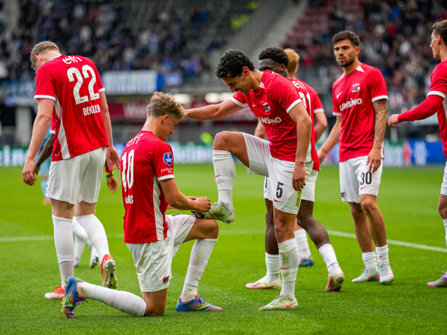 ZAANSTAD- AZ Onder 13 nam het zaterdagochtend in de strijd om het kampioenschap op tegen directe concurrent AFC Ajax. De ploeg van trainer Dico Blei won met 3-2 van de Amsterdammers. De doelpunten aan Alkmaarse zijde werden gemaakt door Iwaynitchyio Asebeh, Daniël Jonker en Nathan Nash. Bekijk hier de samenvatting van de Wedstrijd van de Week.