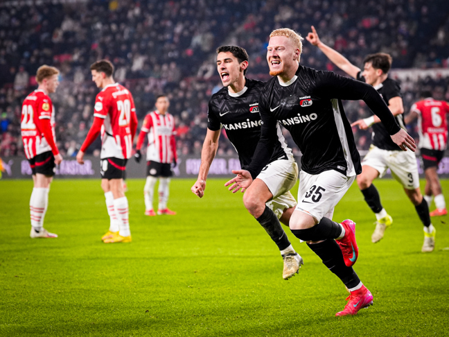 AZ en PSV hielden elkaar zaterdagavond in het Philips Stadion in evenwicht. De Alkmaarders kwamen tweemaal op voorsprong tegen de koploper van de Eredivisie. Invaller Mexx Meerdink scoorde de 1-2, AZ Media ging met hem in gesprek.