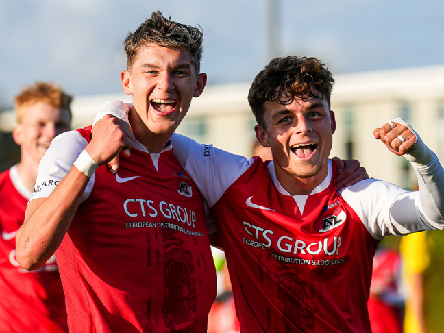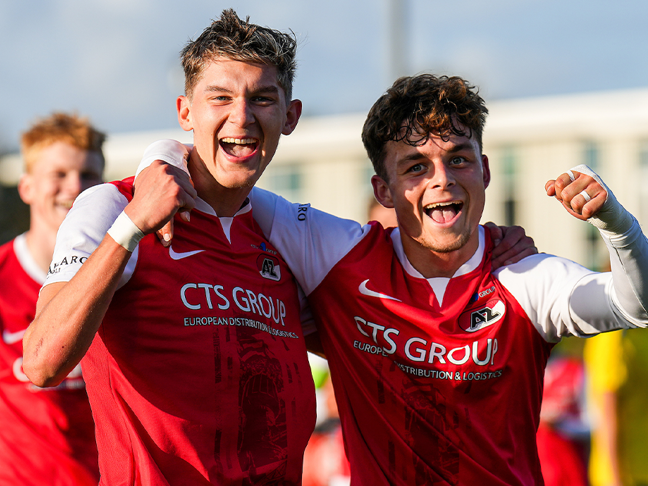 ZAANSTAD- Yoël van den Ban is de nieuwste winnaar van de Unibet Goal van de Maand-bokaal. De spits maakte op schitterende wijze met de hak de tussentijdse 5-0 tegen Klaipeda FM in de UEFA Youth League en ontving met die goal de meeste stemmen. Op het AFAS Trainingscomplex nam de spits zijn prijs in ontvangst.