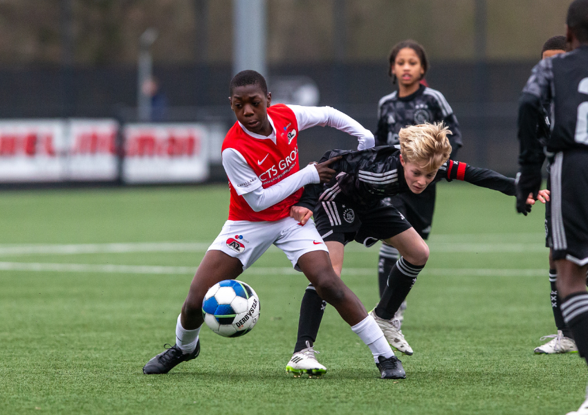 AZ Onder 12 won overtuigend van Ajax. Op het AFAS Trainingscomplex waren de Alkmaarders met 8-1 te sterk voor de Amsterdammers. De ploeg van Tim Appel en Ivar de Boer speelde ditmaal met 11-tegen-11 op het hoofdveld. Ondanks de grotere afstanden kende de thuisploeg weinig problemen en wist het met goed samenspel de tegenstander met ruime cijfers te verslaan.