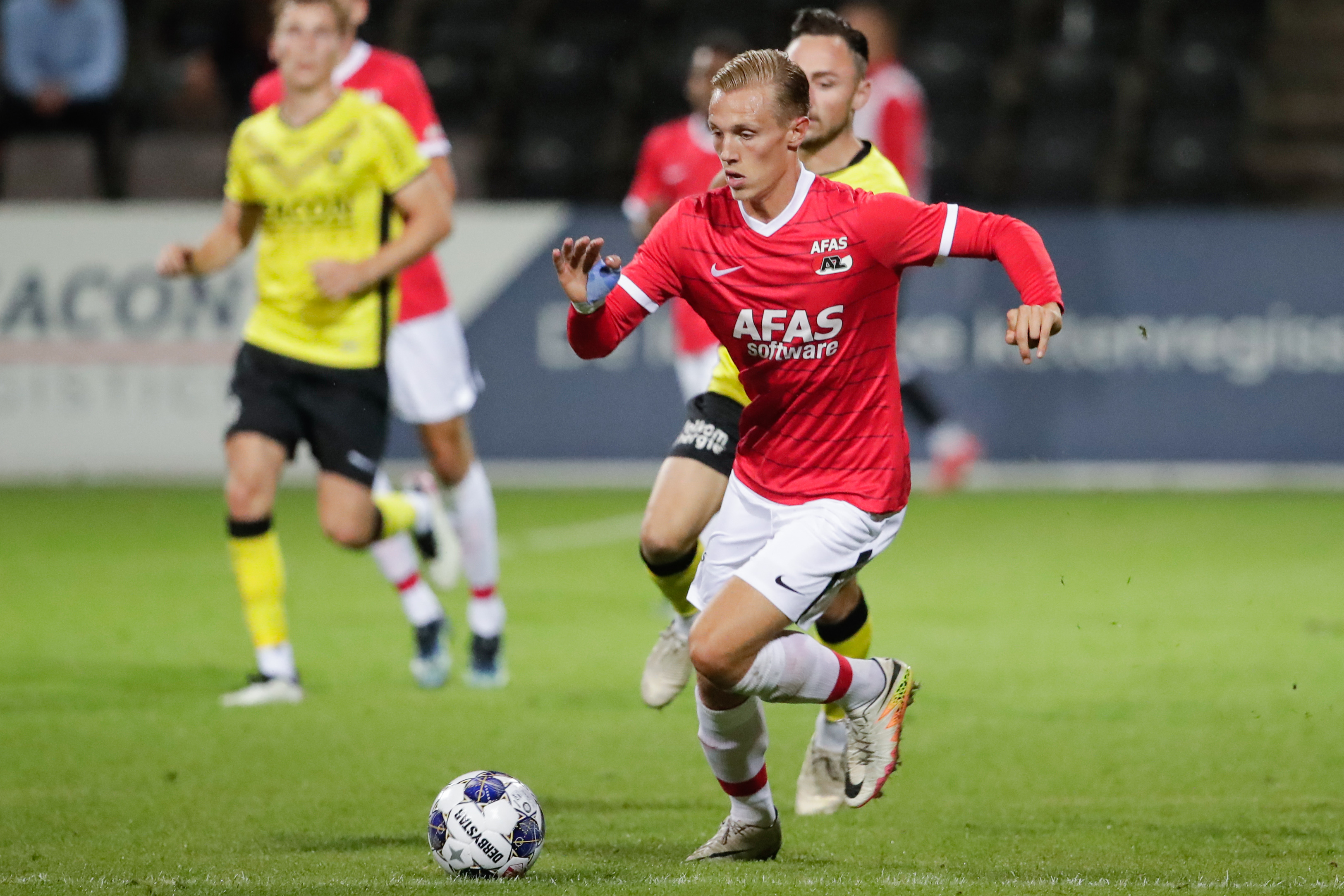 Joey Jacobs in duel met Jong AZ tegen VVV-Venlo.
