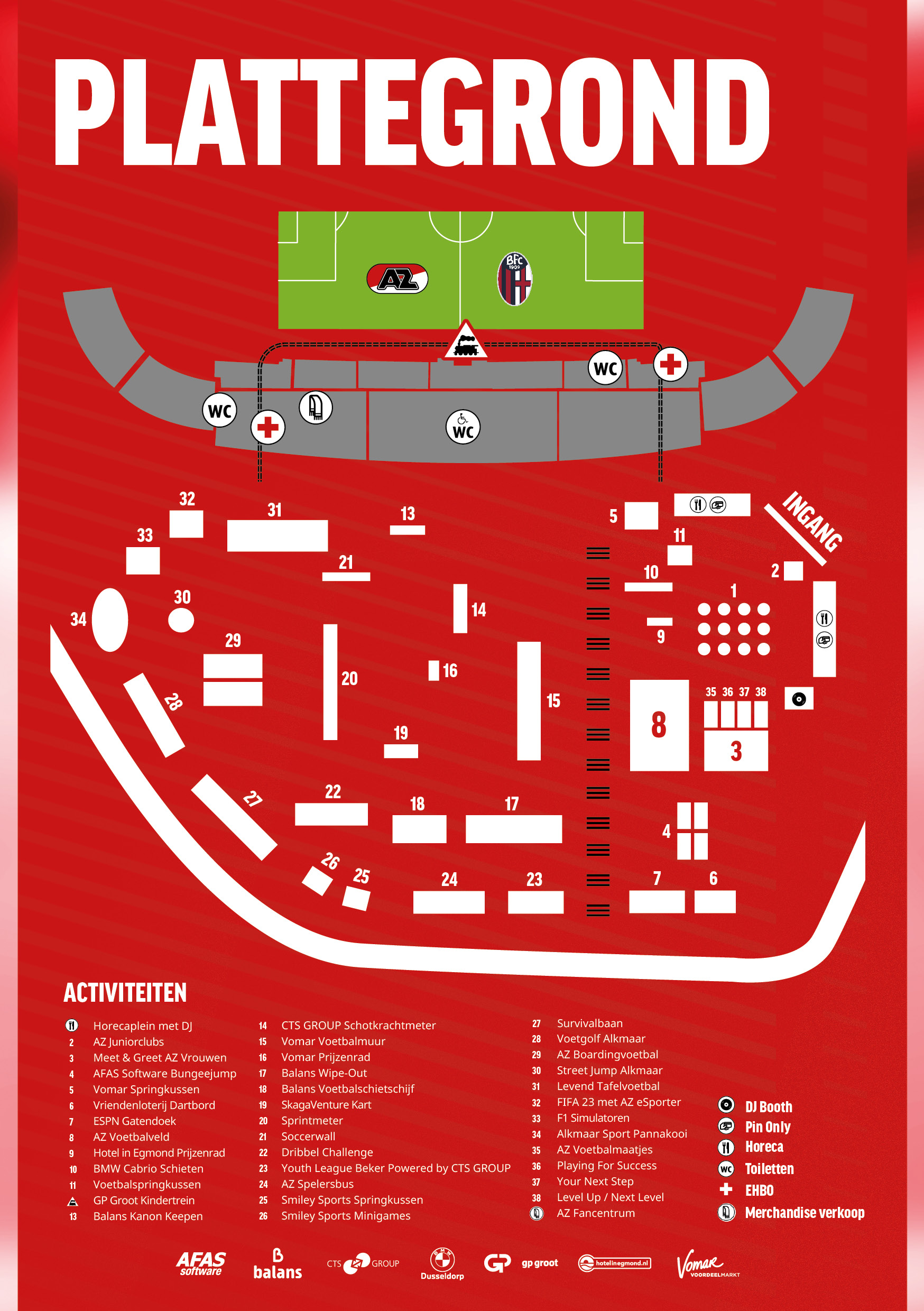 Hieronder zie je de plattegrond met alle activiteiten op de AZ Fandag!