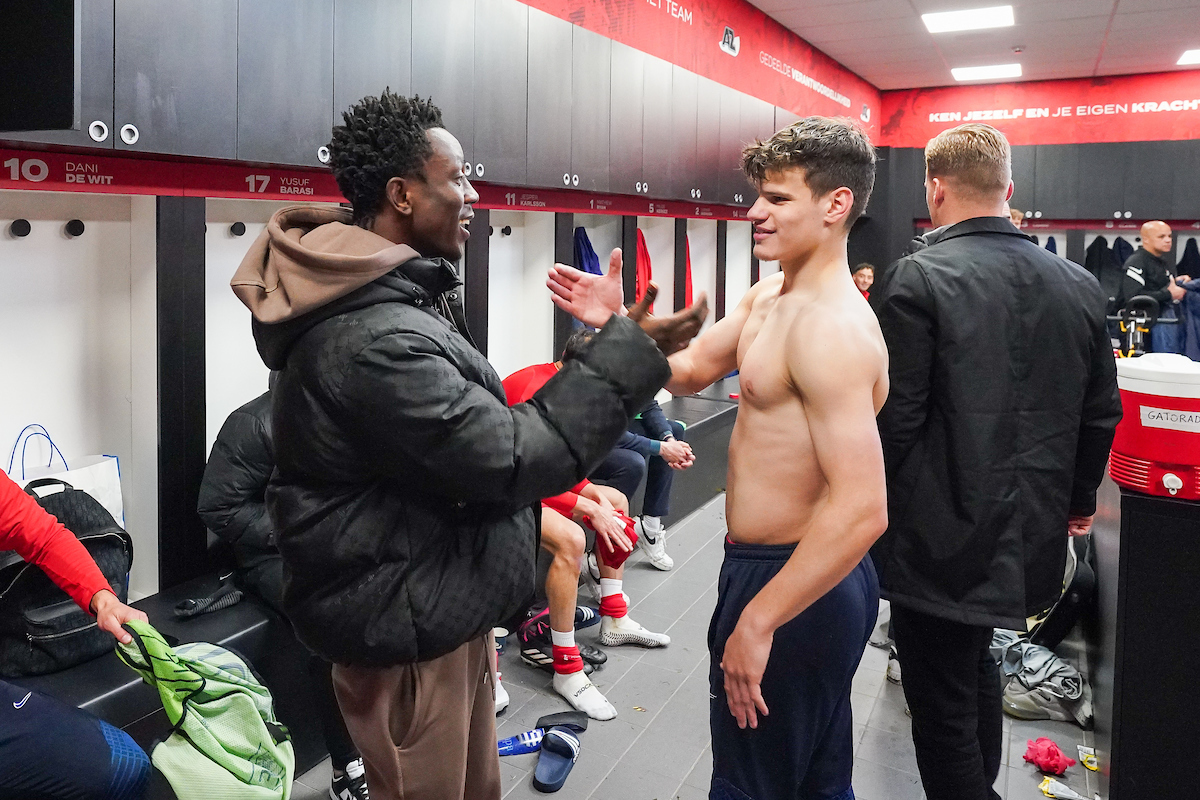 Sowah en Kerkez in de kleedkamer na de zege op Anderlecht / Foto: Ed van de Pol