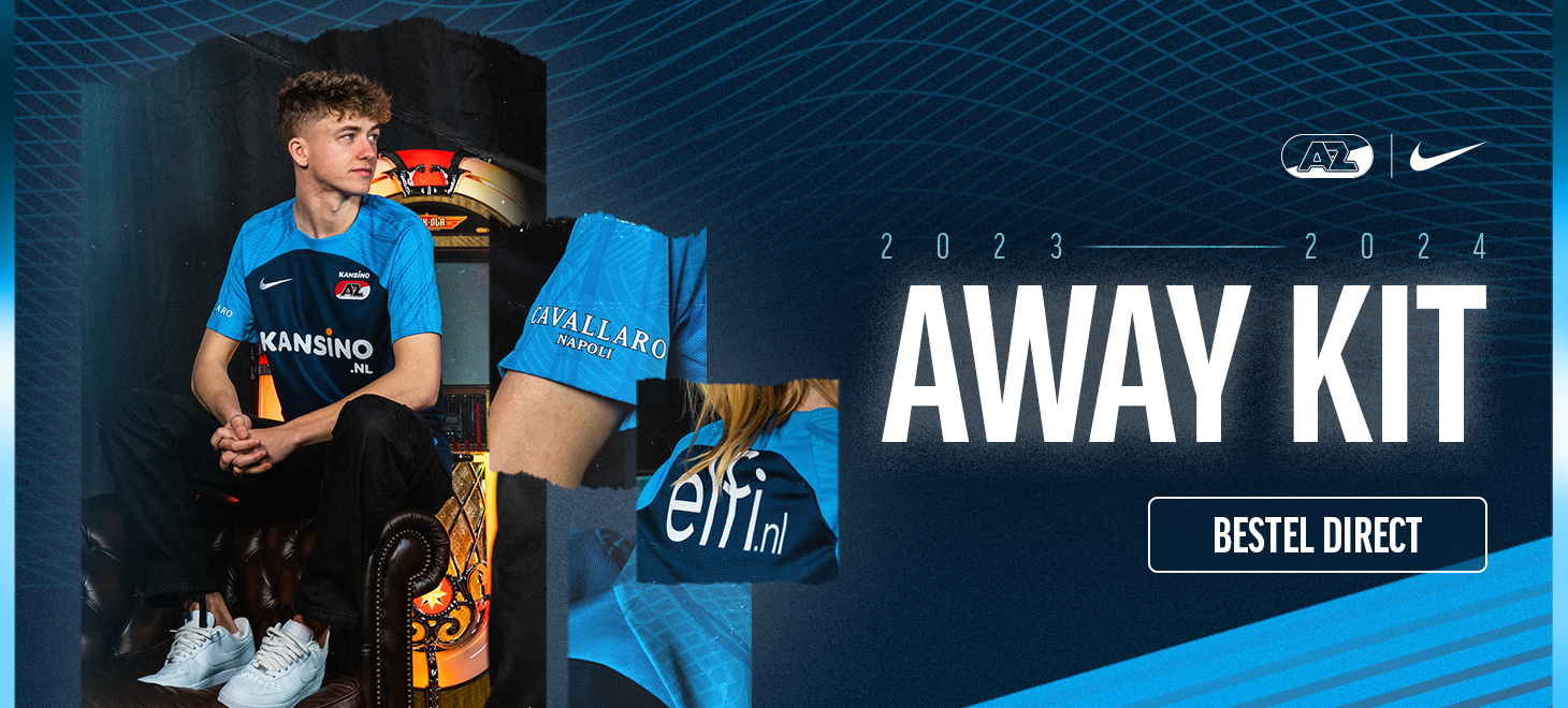 AZ maakt in het uitduel met de Engelsen zijn opwachting in het blauwe uittenue, dat vrijdagochtend is onthuld. Het frisse shirt is donkerblauw, waarbij de schouders en mouwen zijn afgewerkt in een lichtere kleur blauw. De kleur van de romp is doorgetrokken naar de broek en kousen. Je bestelt 'm direct via AZ.nl/store.