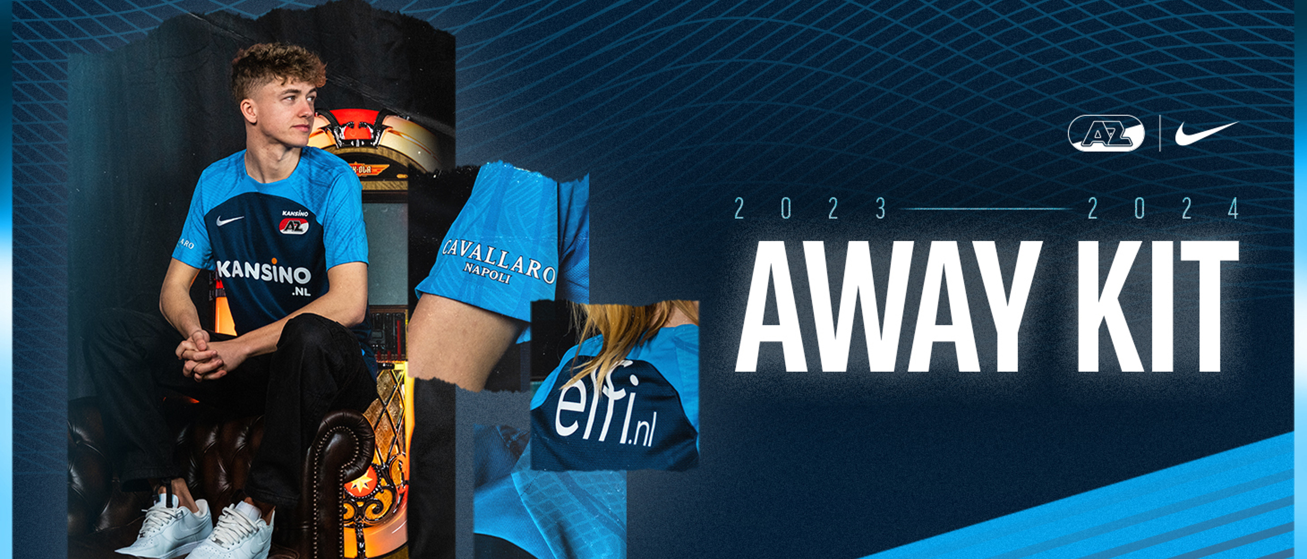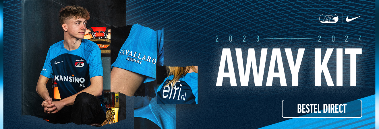 ALKMAAR- AZ heeft vrijdagochtend het blauwe uittenue voor het seizoen 2023-2024 onthuld. Het tricot is per direct verkrijgbaar in het AZ Fancentrum of te koop in de webshop op AZ.nl.