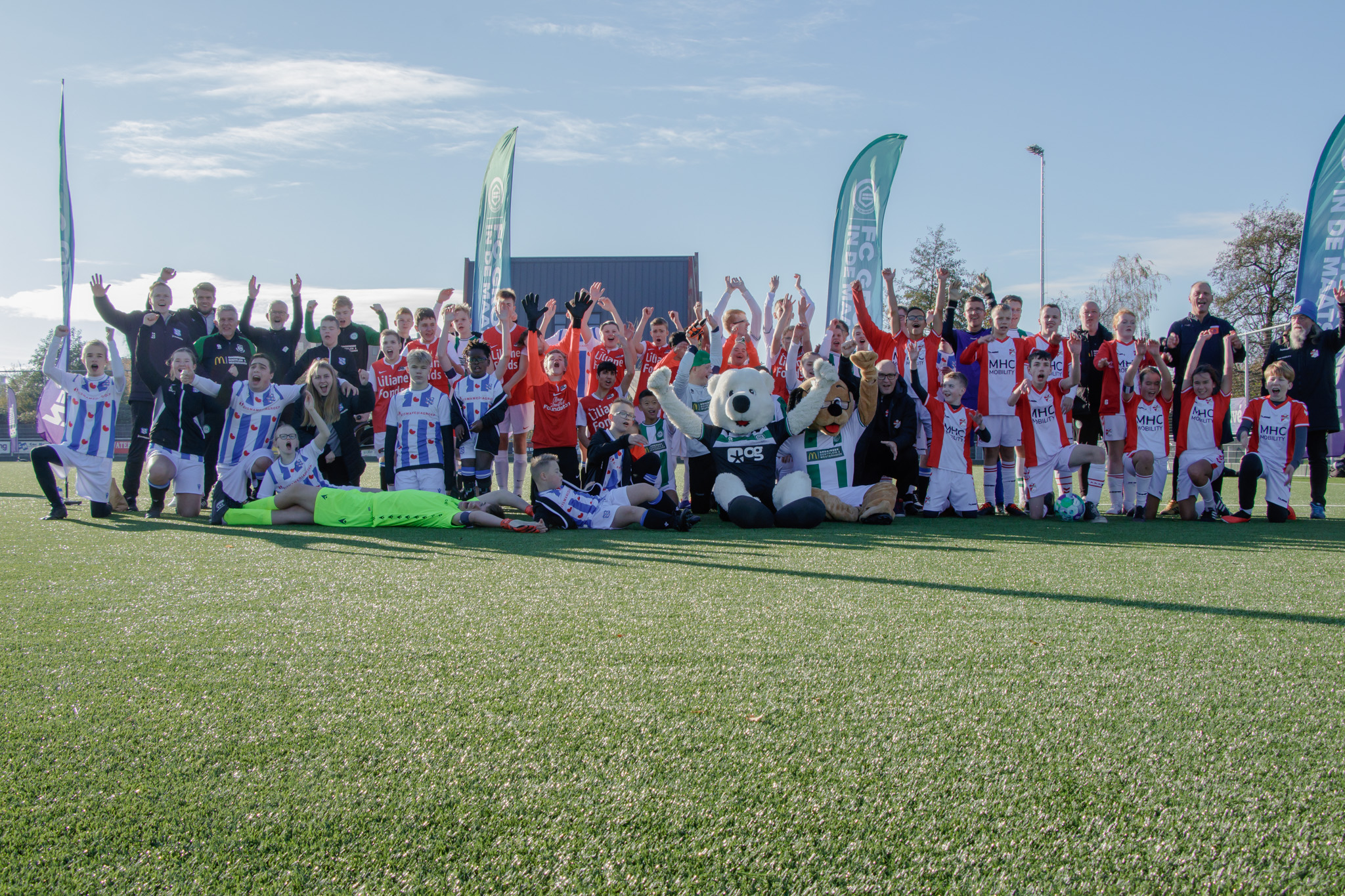 In de wedstrijd daarna was FC Emmen de tegenstander. Na een 1-1 eindstand moesten er penalty's aan te pas komen. De stand werd niet echt bijgehouden, maar de voetballers hadden de grootste lol. Na elke raak geschoten penalty werd er weer uitbundig gejuicht. De dag werd afgesloten met een oefenwedstrijd tegen FC Groningen. Die werd helaas met 2-0 verloren, maar dat mocht de pret niet drukken. Voor de g-voetballers was het een unieke ervaring waarbij ook veel nieuwe vriendschappen werden gesloten. Het plezier stond centraal. De gezamenlijke groepsfoto met alle teams na afloop bevestigde dat beeld.