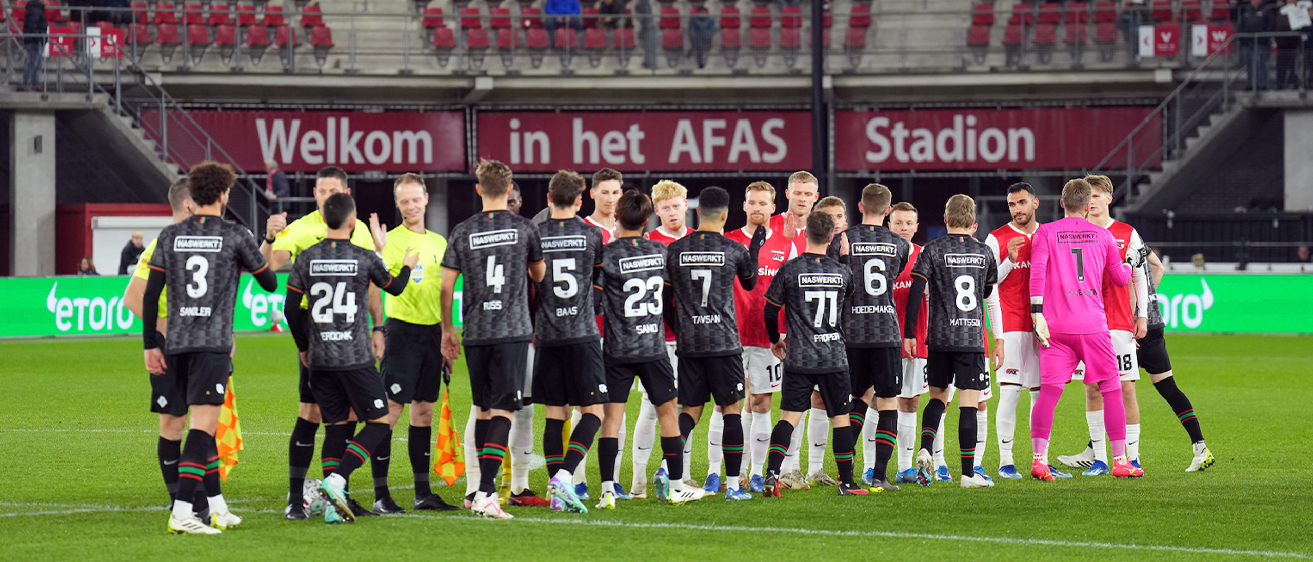 Opstelling NEC bij de hervatting: Jasper Cillessen, Philippe Sandler, Mathias Ross, Youri Baas, Mees Hoedemakers, Elayis Tavsan, Magnus Mattsson, Bram Nuytinck, Kodai Sano, Calvin Verdonk, Dirk Proper.