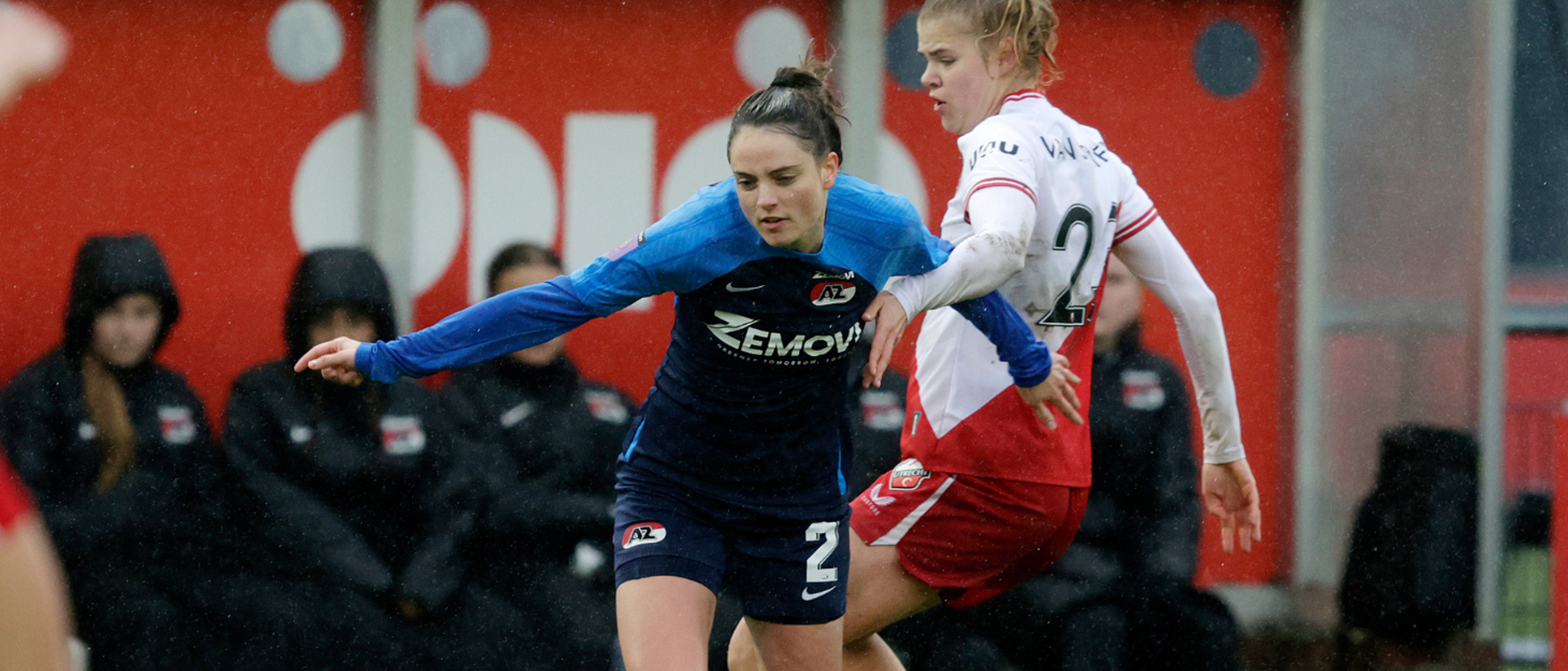 UTRECHT- De AZ Vrouwen kwamen zaterdagmiddag niet verder dan een gelijkspel tegen FC Utrecht. Met de snelste goal ooit in de Azerion Vrouwen Eredivisie, na slechts 11 seconden, kwam AZ via Floor Spaan op voorsprong. Twee tegentreffers vlak na rust en de gelijkmaker van Spaan bepaalde de eindstand op een 2-2 gelijkspel.