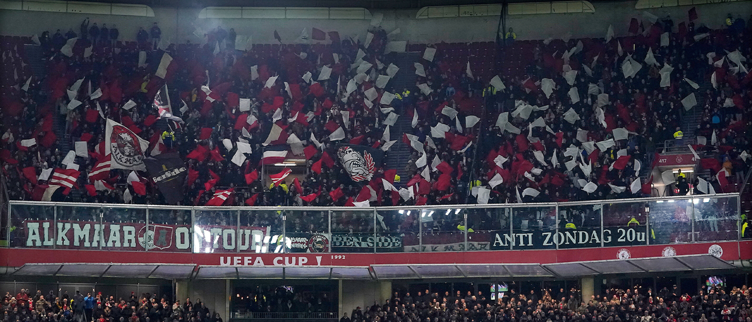 Alkmaar- Bij de wedstrijd Ajax - AZ op zondag 8 oktober wordt voor AZ-supporters slechts de helft van het uitvak beschikbaar gesteld. Tevens geldt een verplichte buscombi.