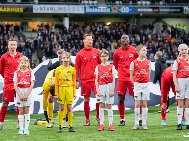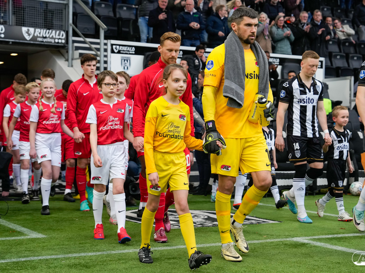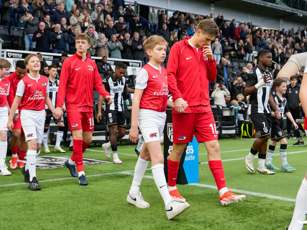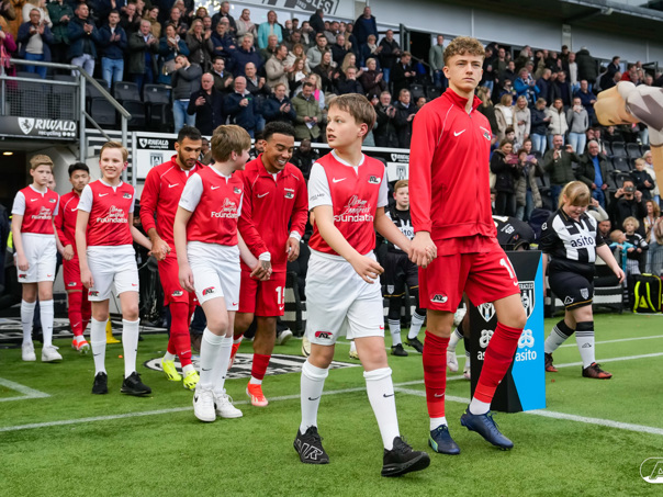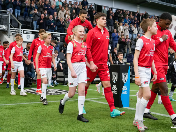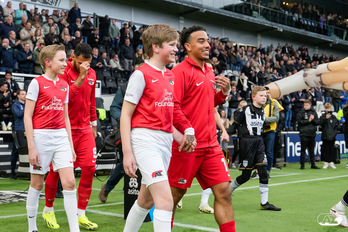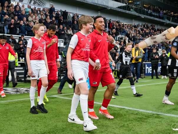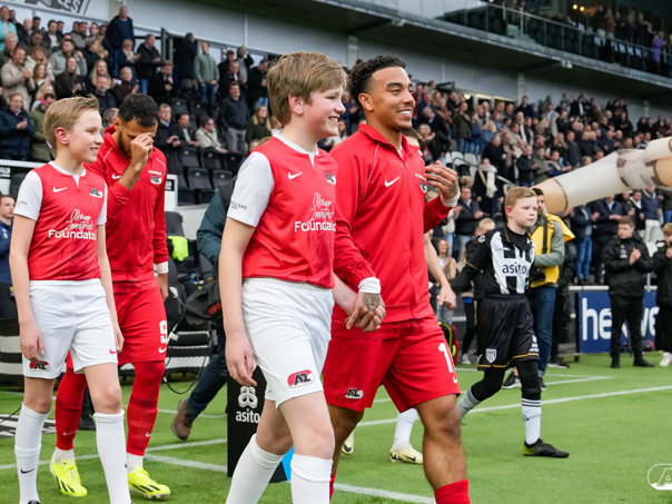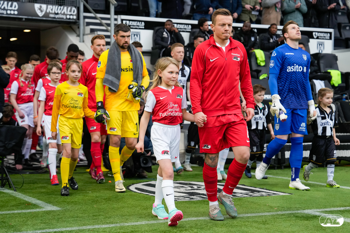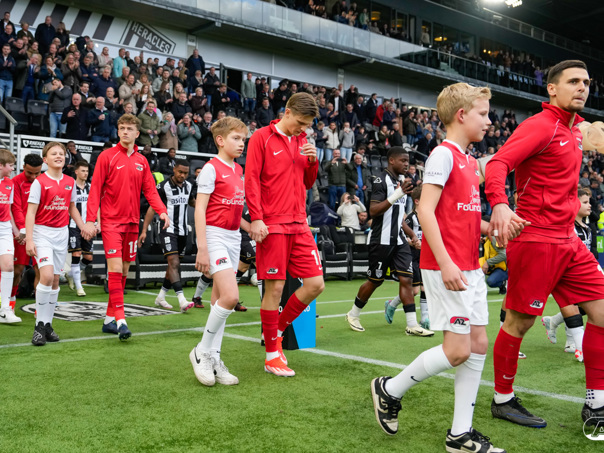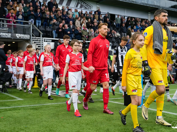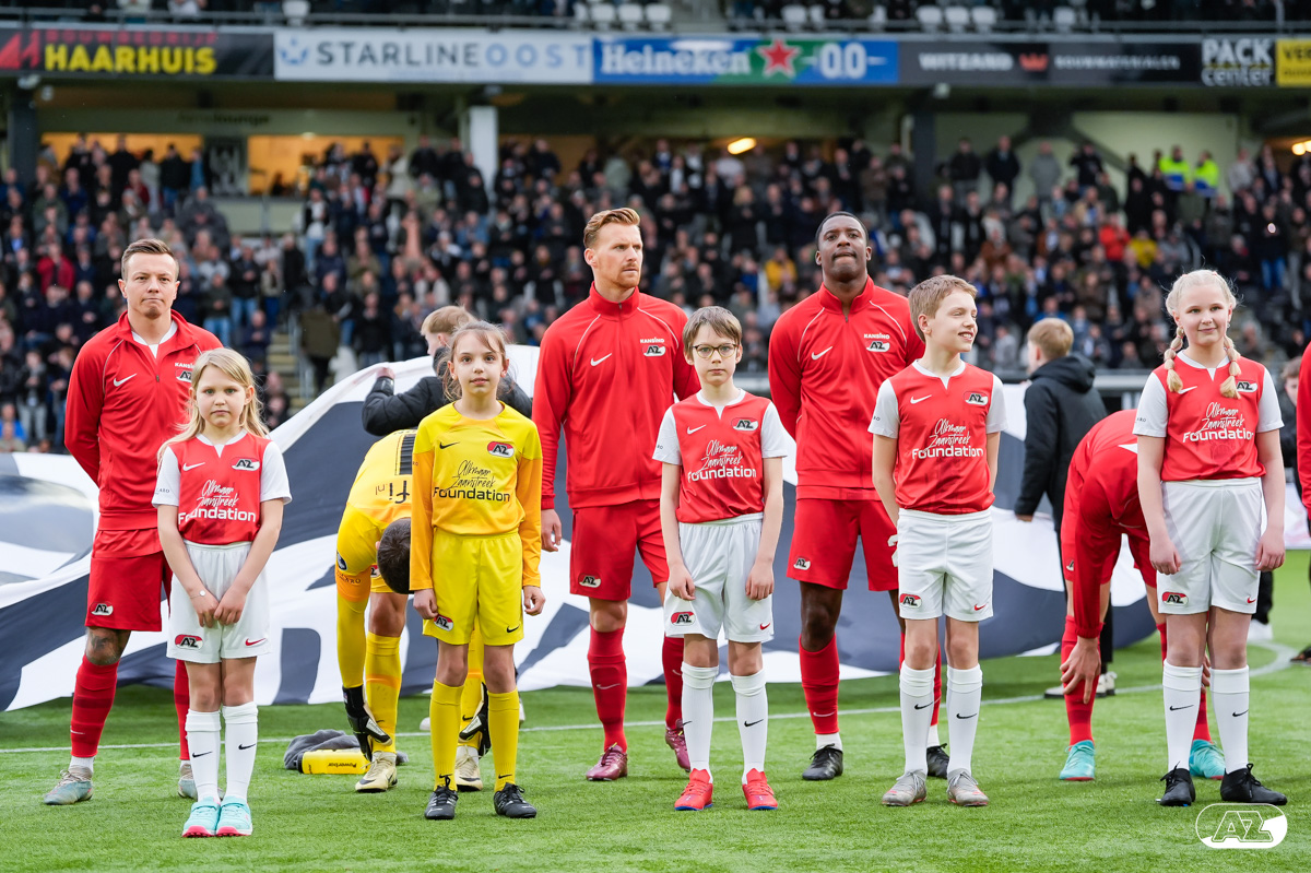 ALMELO- Voorafgaand aan de wedstrijd van de Heracles tegen AZ mochten leden van De Waaghalzen & De AllstarZ mee het veld op als spelersescorte. De Waaghalzen & De AllstarZ bij de wedstrijd tussen Heracles en AZ in beeld.