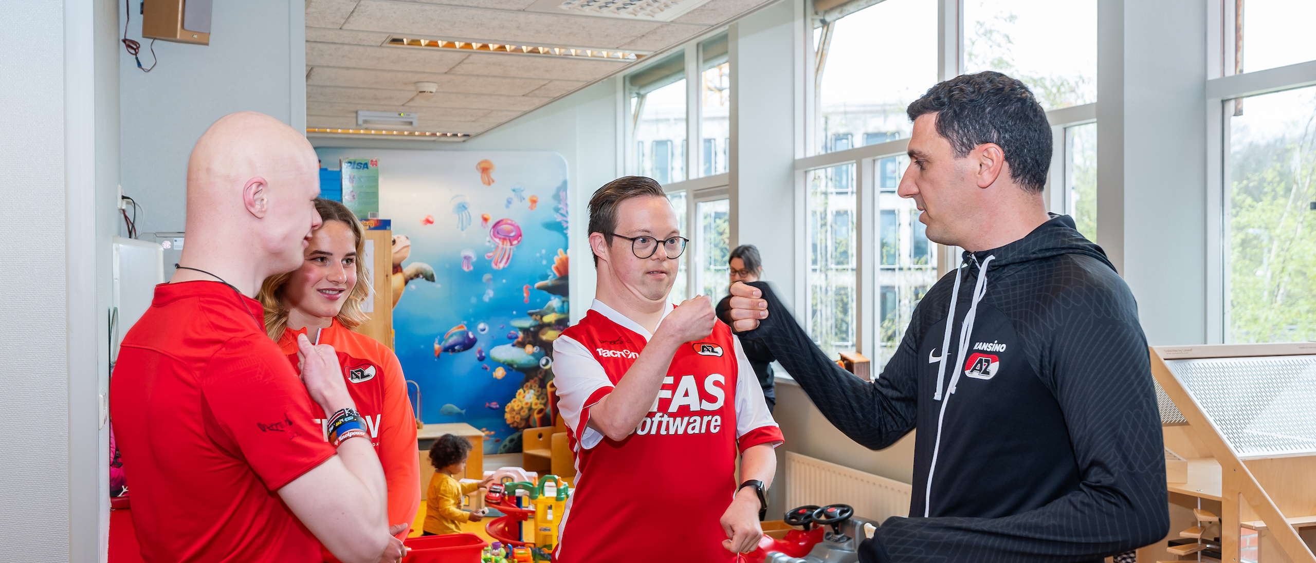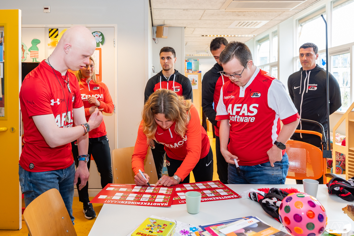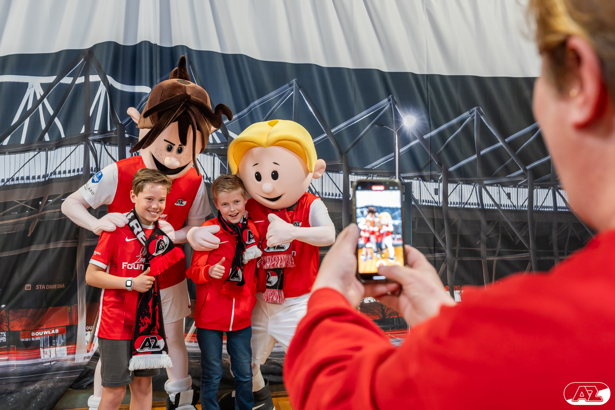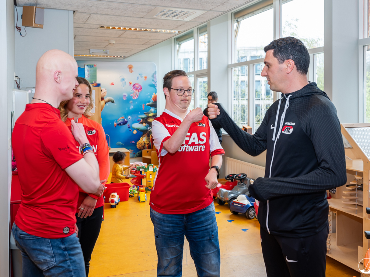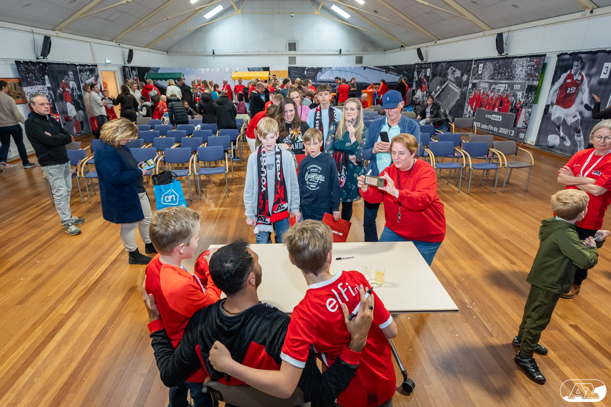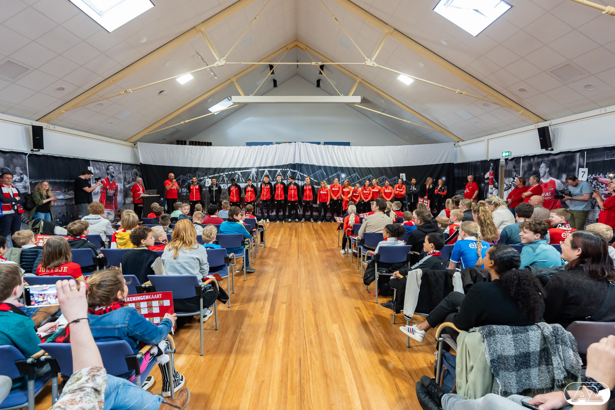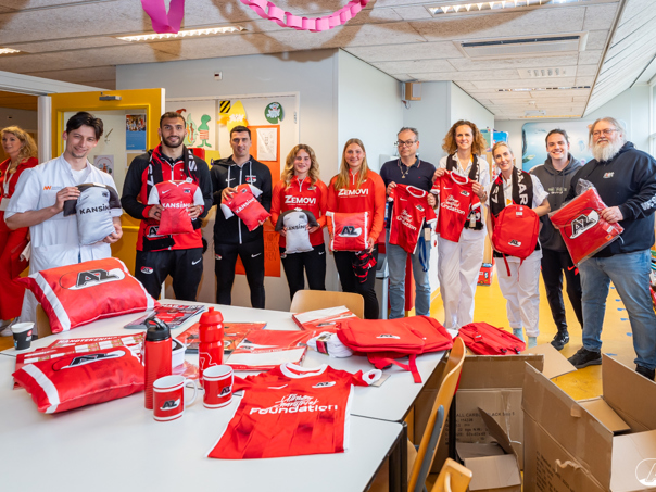 ALKMAAR- Meer dan vijftig kinderen in ziekenhuis Noordwest te Alkmaar werden dinsdag blij verrast door een bezoekje van spelers van AZ 1, speelsters van de AZ Vrouwen en stafleden van beide teams. De kinderen konden bij een persconferentie al hun vragen stellen en ook deelde de AZ-delegatie zich op om verschillende afdelingen te bezoeken. Het ziekenhuisbezoek in beeld. (Foto's: Ed van de Pol)