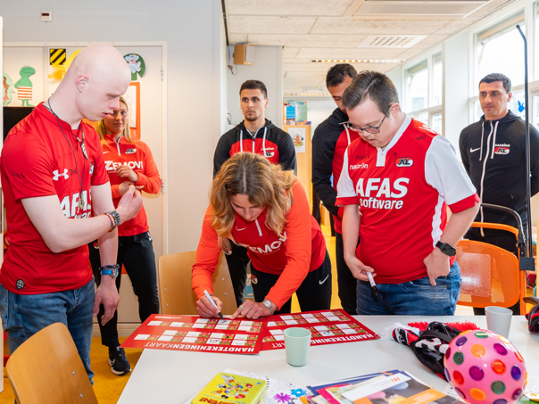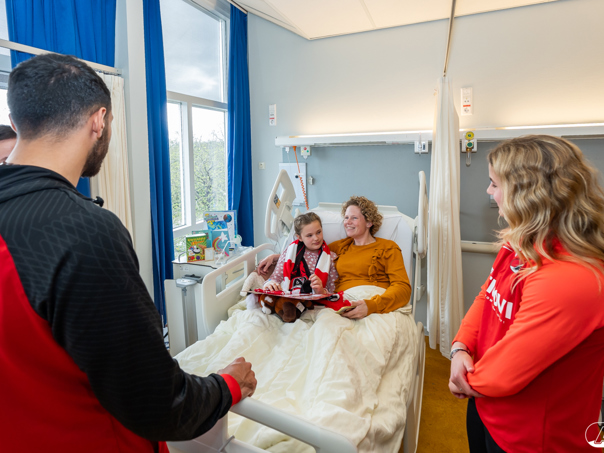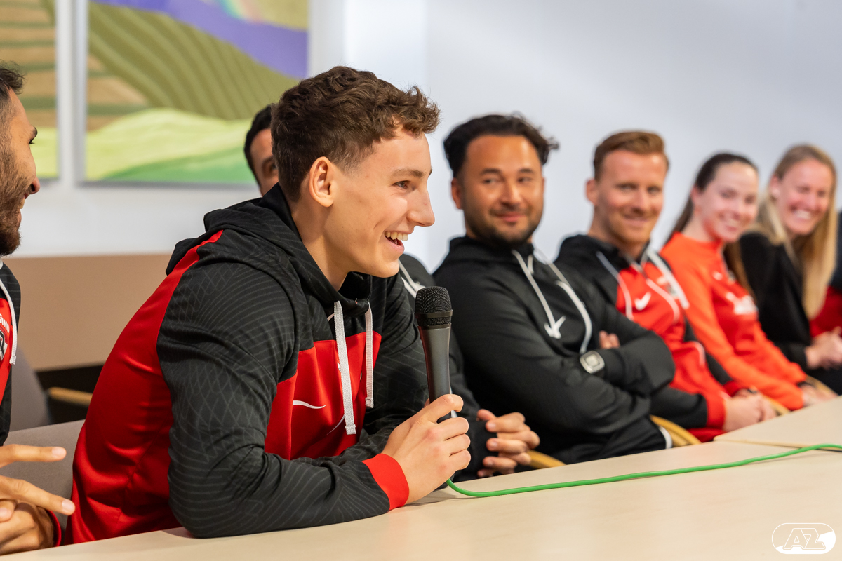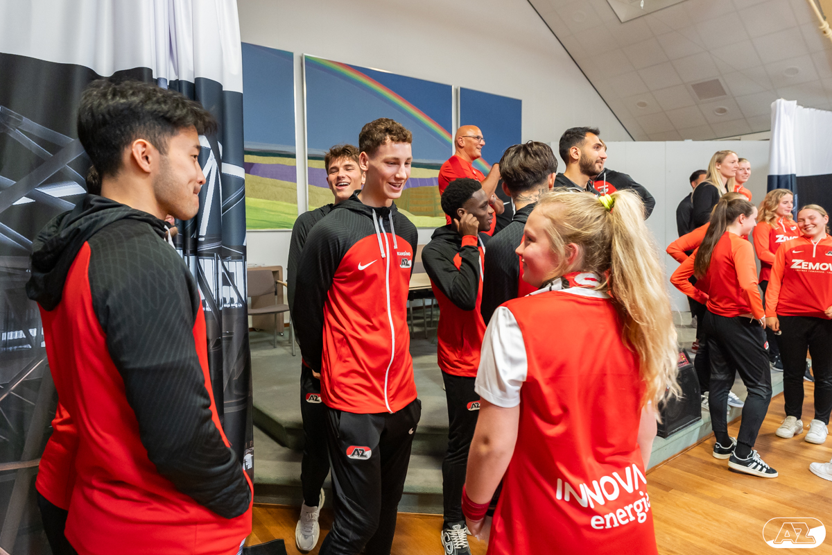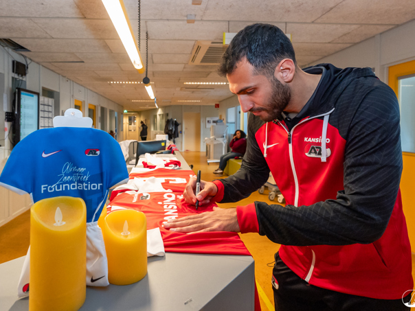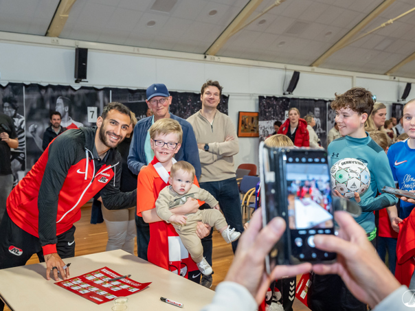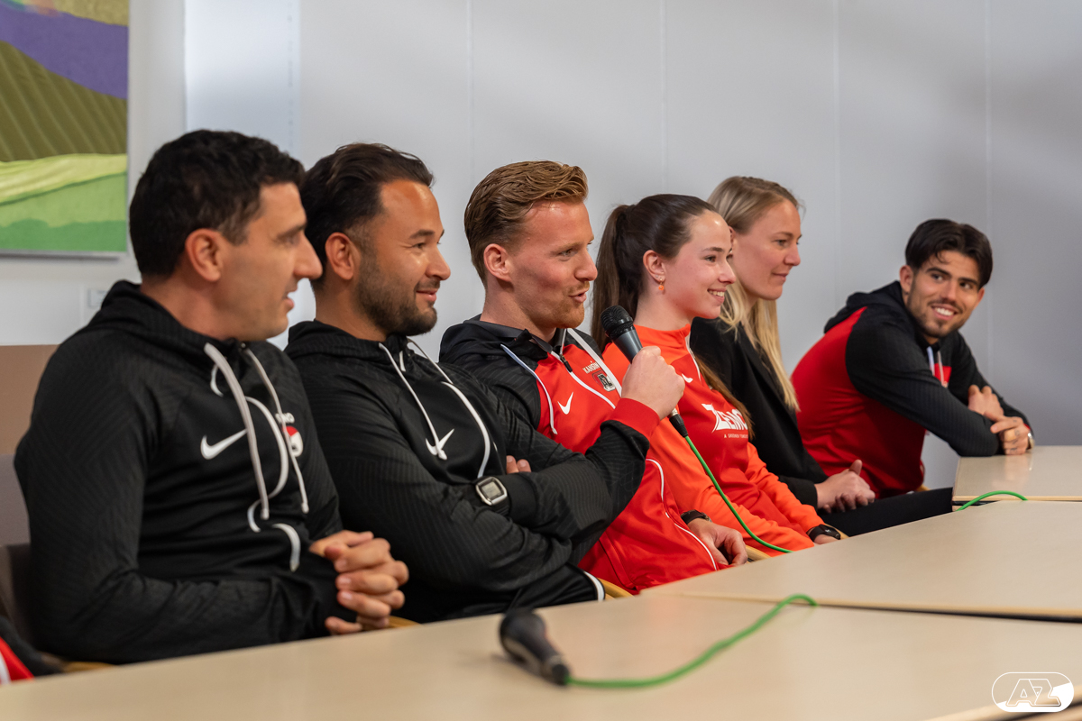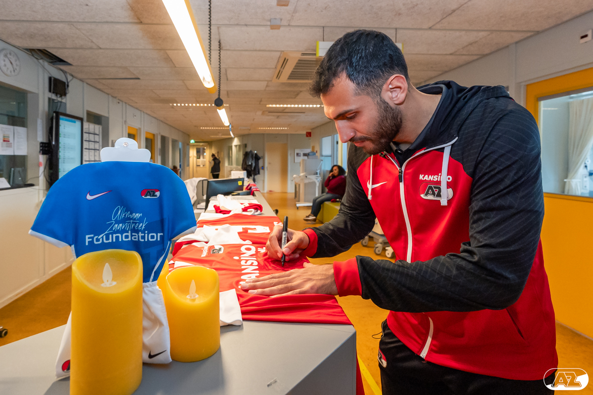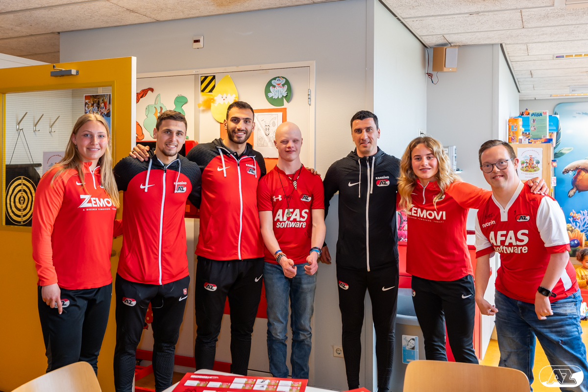 ALKMAAR- Meer dan vijftig kinderen in ziekenhuis Noordwest te Alkmaar werden dinsdag blij verrast door een bezoekje van spelers van AZ 1, speelsters van de AZ Vrouwen en stafleden van beide teams. De kinderen konden bij een persconferentie al hun vragen stellen en ook deelde de AZ-delegatie zich op om verschillende afdelingen te bezoeken. Het ziekenhuisbezoek in beeld. (Foto's: Ed van de Pol)