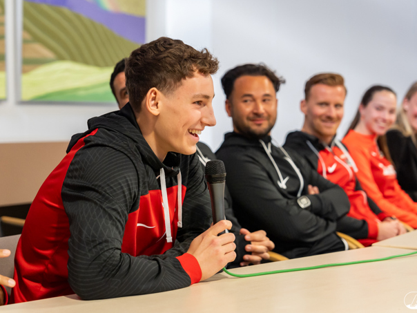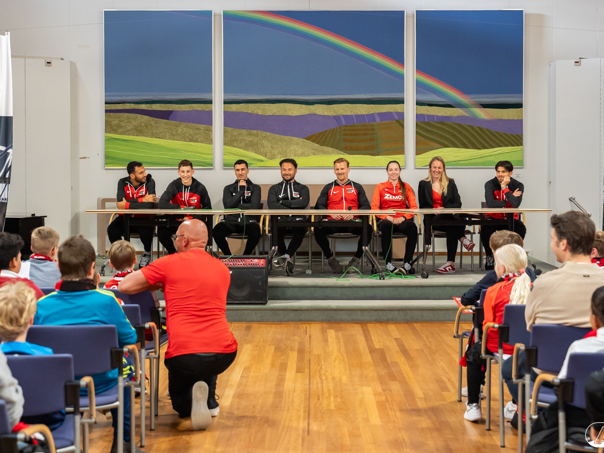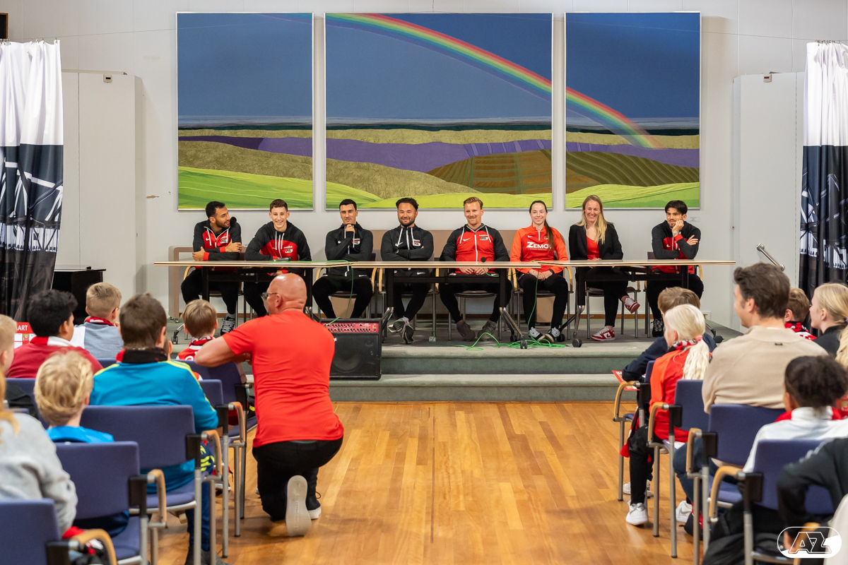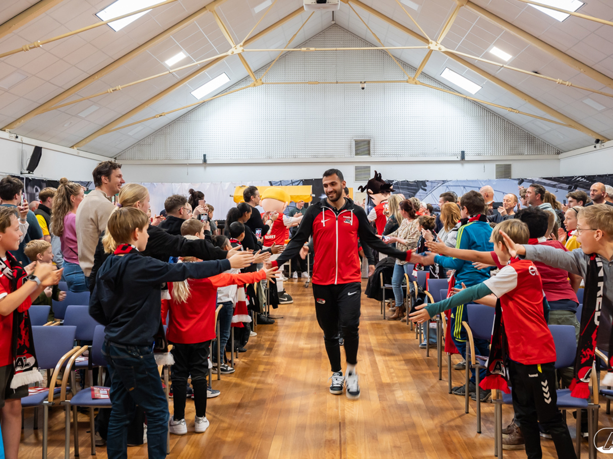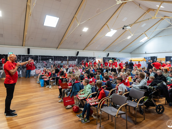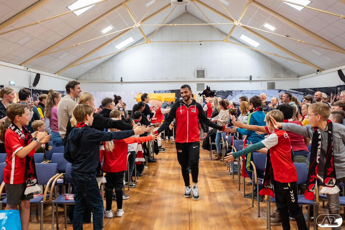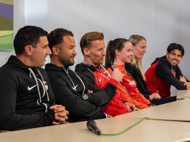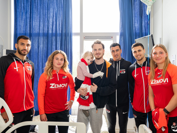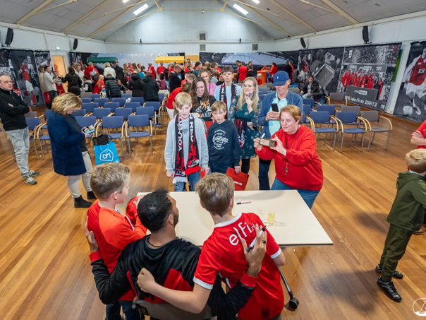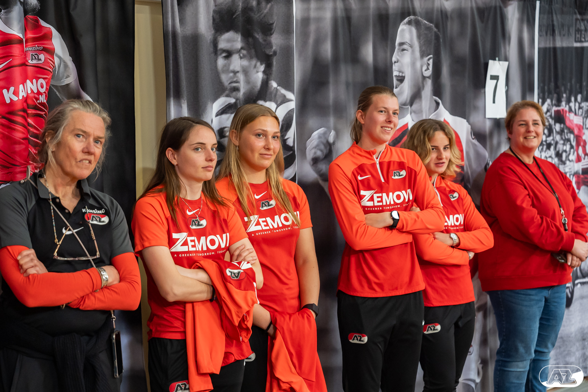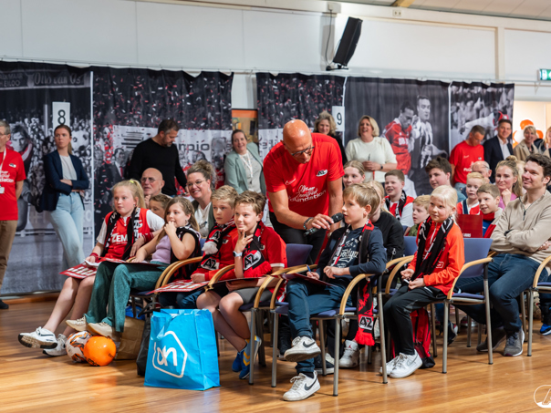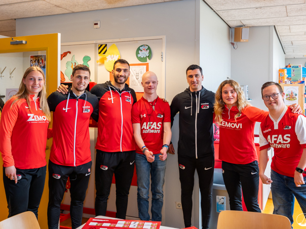 ALKMAAR- Meer dan vijftig kinderen in ziekenhuis Noordwest te Alkmaar werden dinsdag blij verrast door een bezoekje van spelers van AZ 1, speelsters van de AZ Vrouwen en stafleden van beide teams. De kinderen konden bij een persconferentie al hun vragen stellen en ook deelde de AZ-delegatie zich op om verschillende afdelingen te bezoeken. Het ziekenhuisbezoek in beeld. (Foto's: Ed van de Pol)