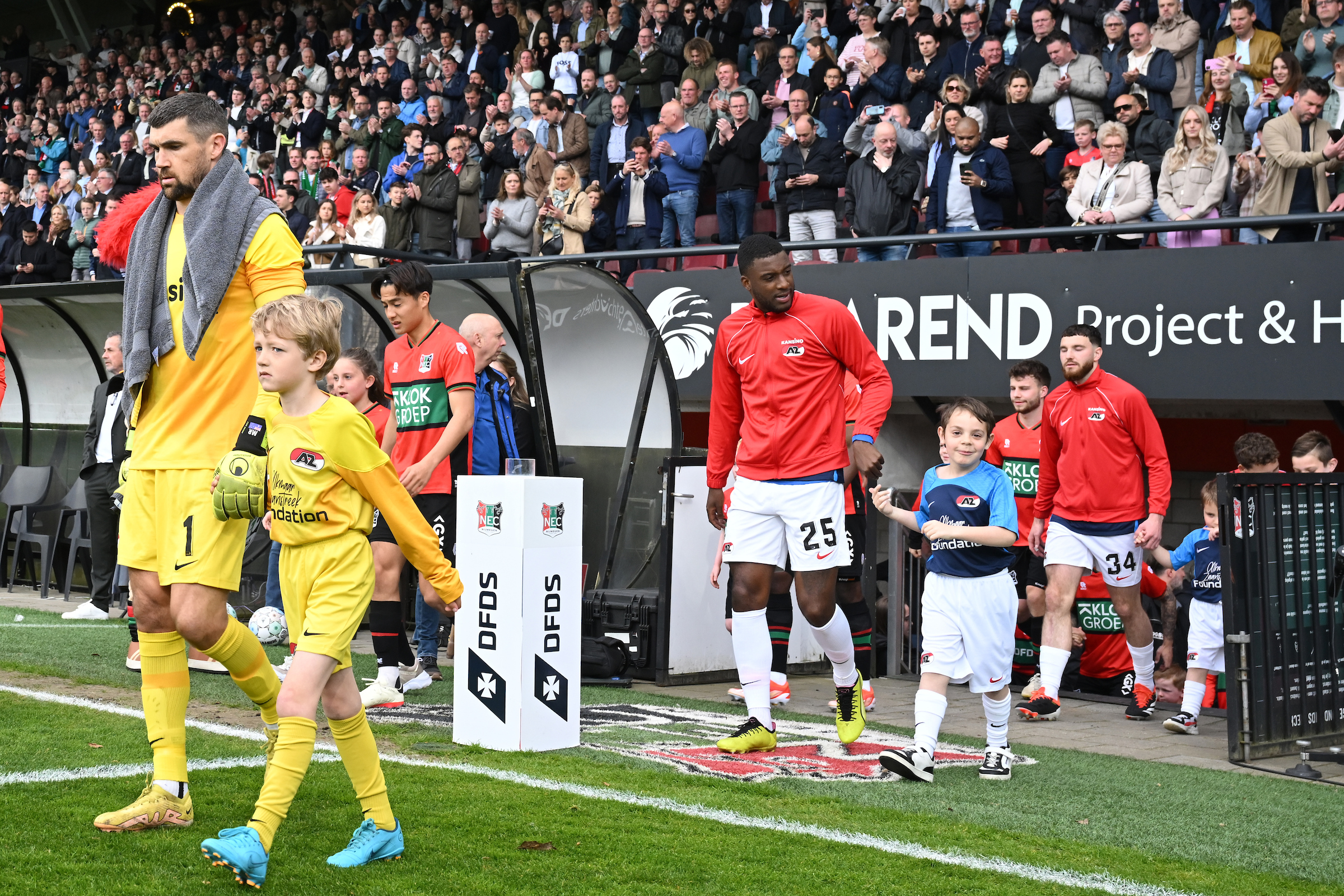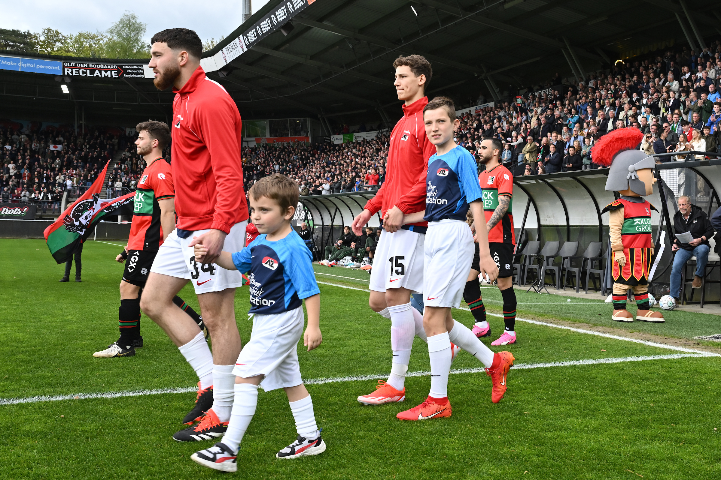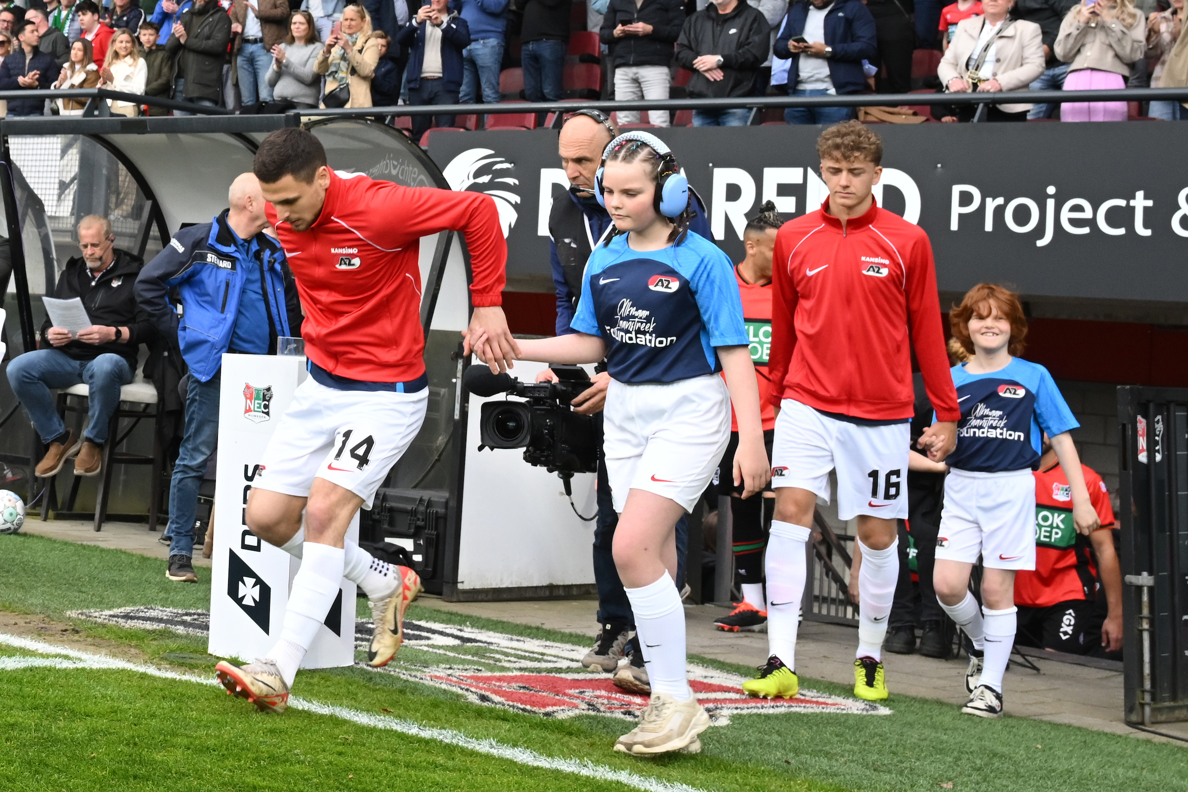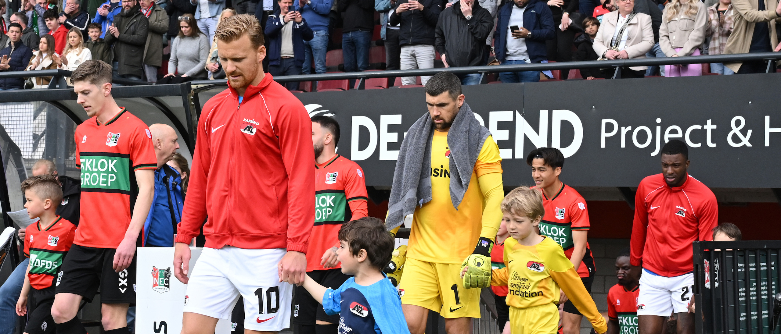 NIJMEGEN- Voorafgaand aan de wedstrijd van NEC tegen AZ mochten leden van De Waaghalzen & De AllstarZ mee het veld op als spelersescorte. De Waaghalzen & De AllstarZ bij de wedstrijd tussen NEC en AZ in beeld.