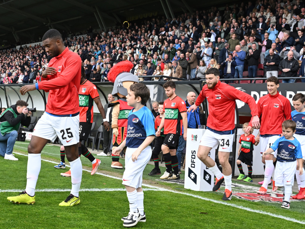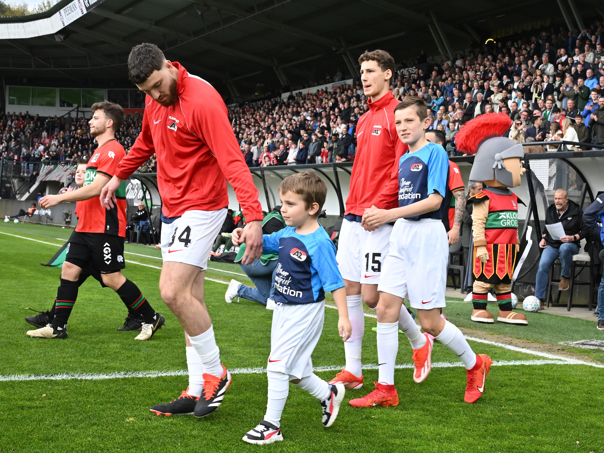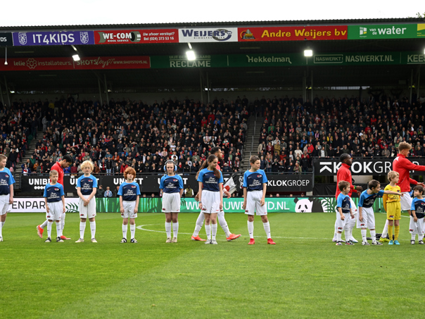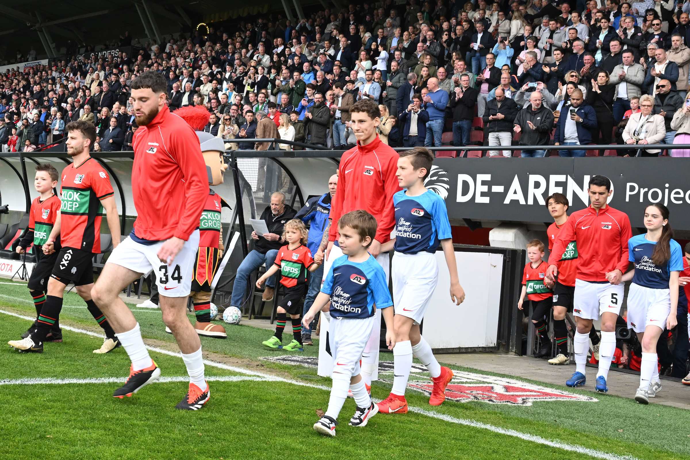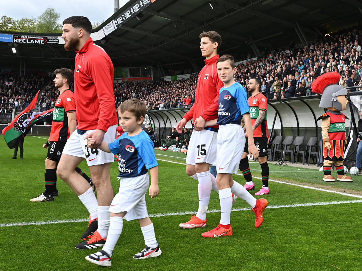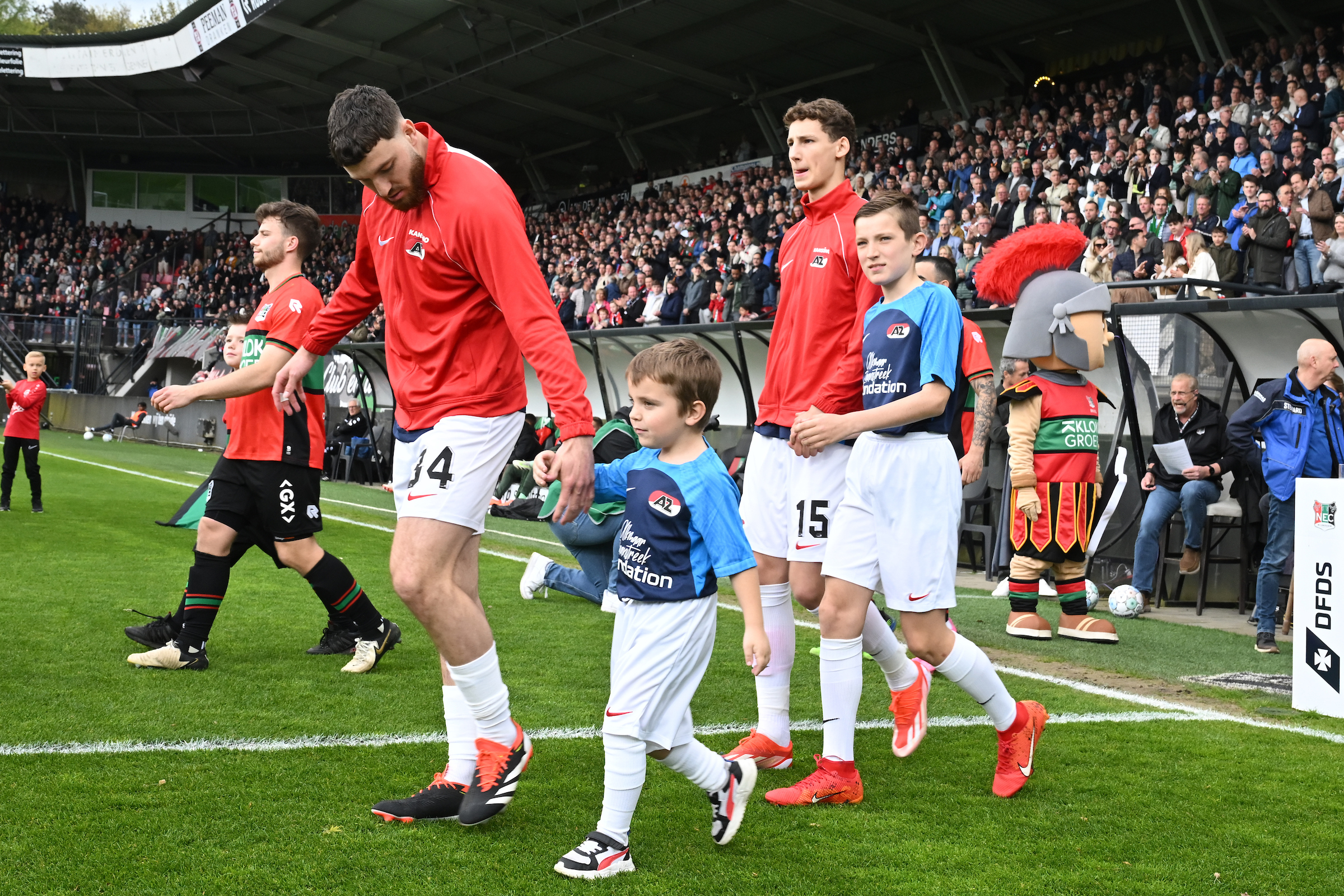 NIJMEGEN- Voorafgaand aan de wedstrijd van NEC tegen AZ mochten leden van De Waaghalzen & De AllstarZ mee het veld op als spelersescorte. De Waaghalzen & De AllstarZ bij de wedstrijd tussen NEC en AZ in beeld.
