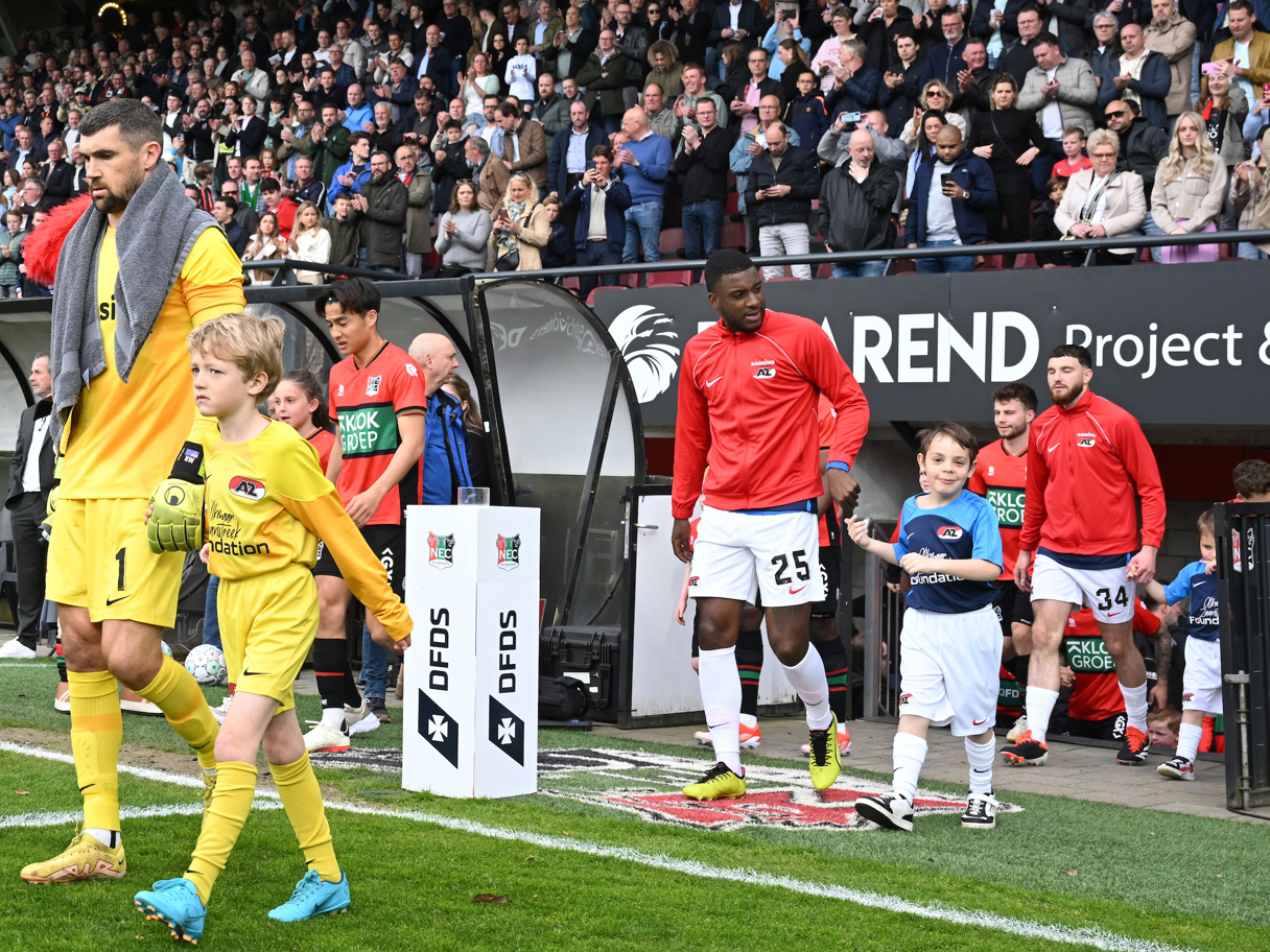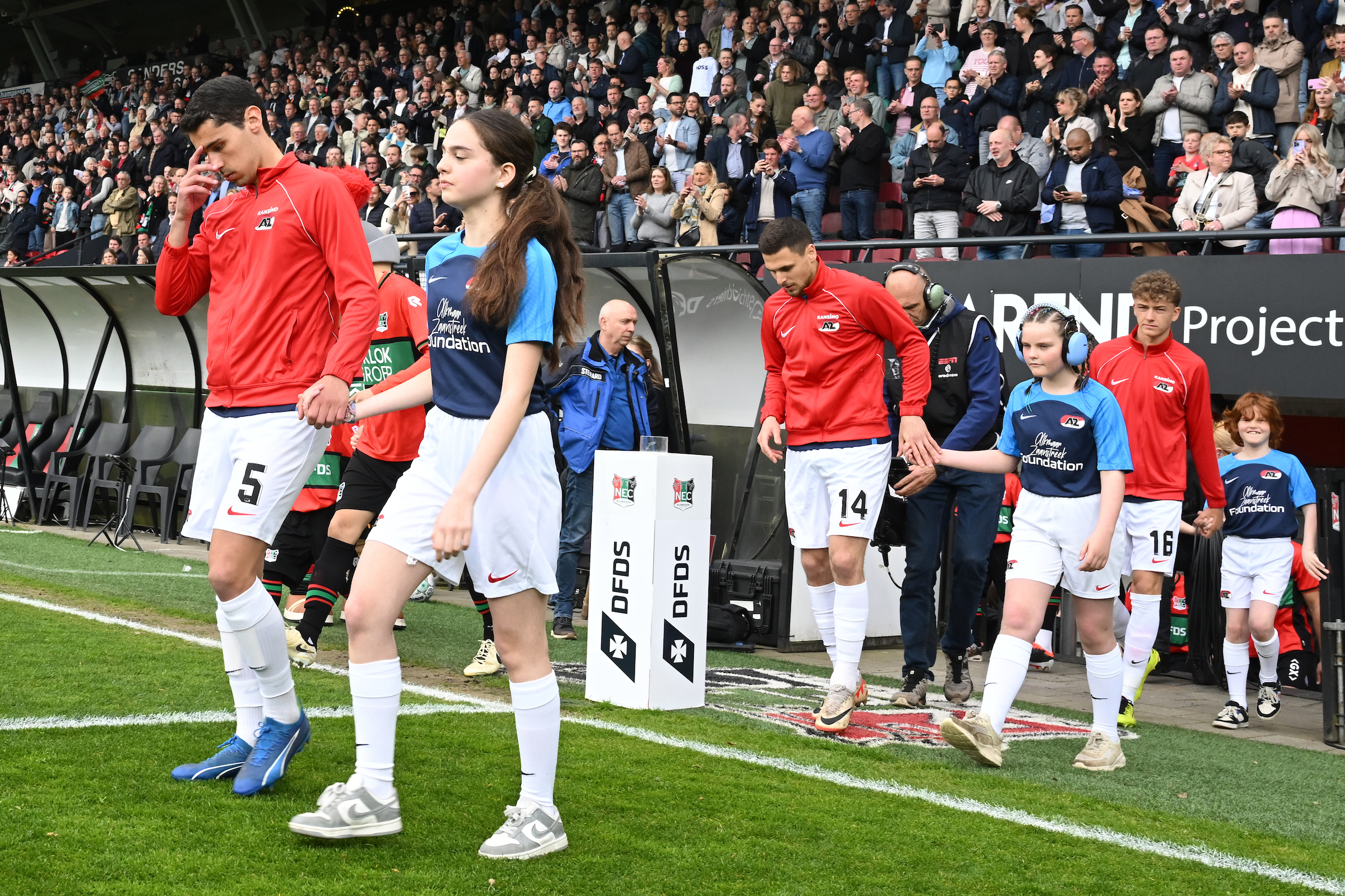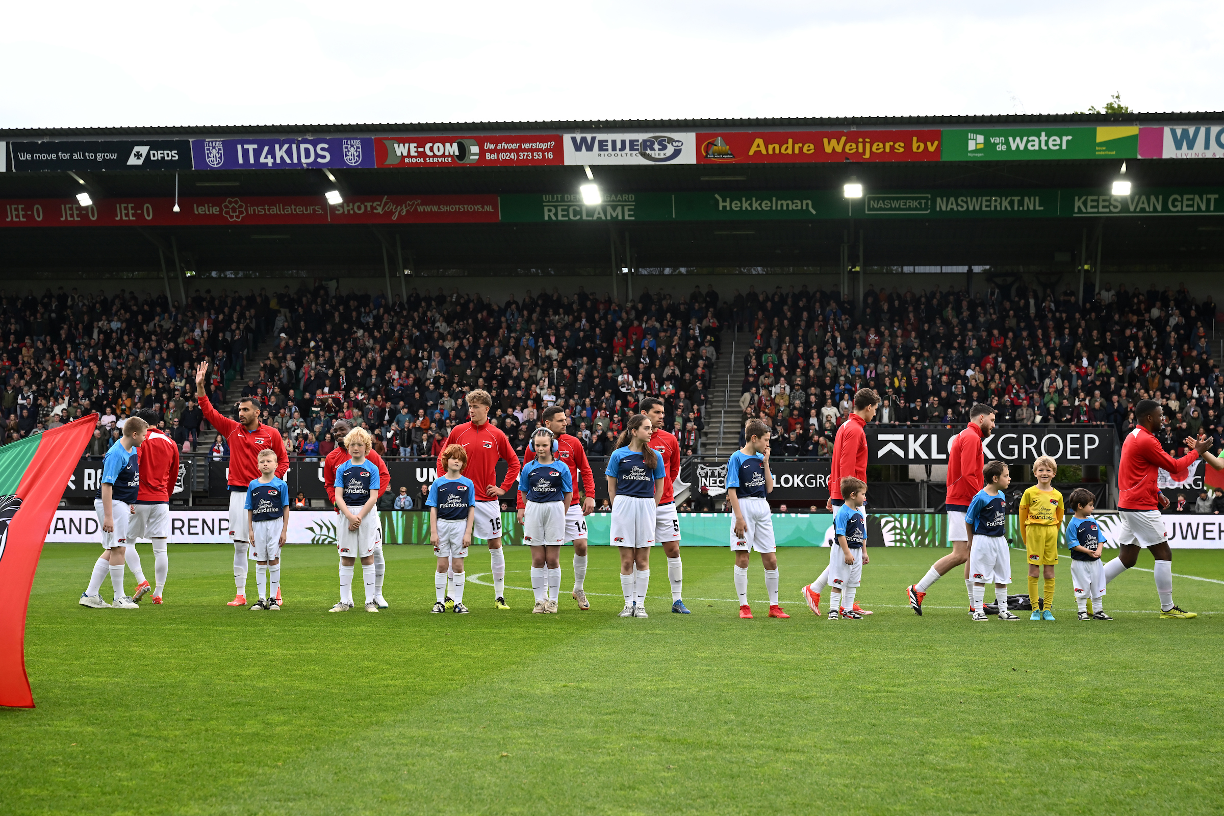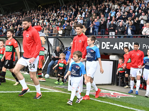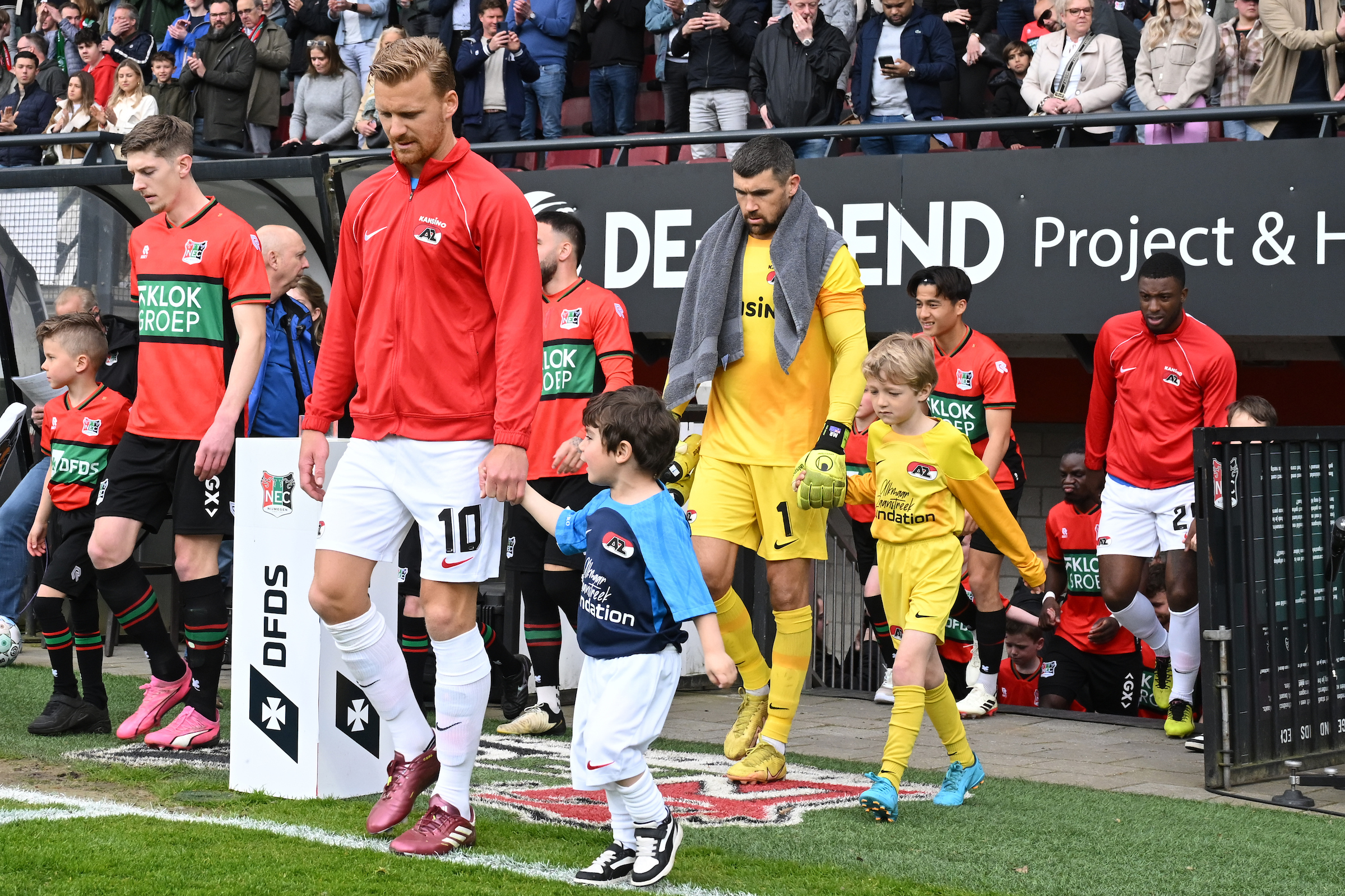 NIJMEGEN- Voorafgaand aan de wedstrijd van NEC tegen AZ mochten leden van De Waaghalzen & De AllstarZ mee het veld op als spelersescorte. De Waaghalzen & De AllstarZ bij de wedstrijd tussen NEC en AZ in beeld.