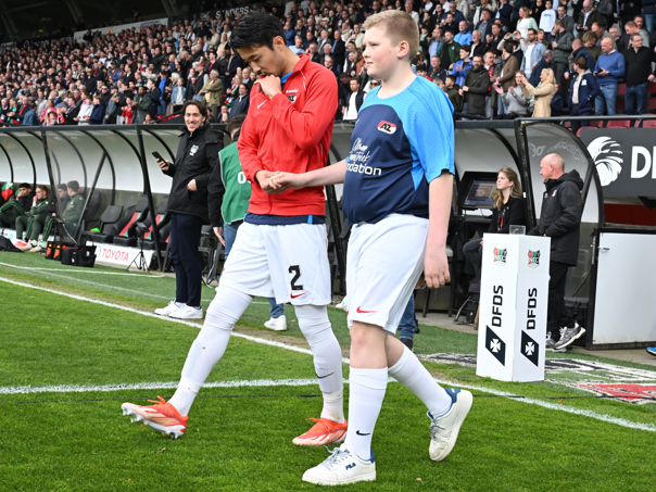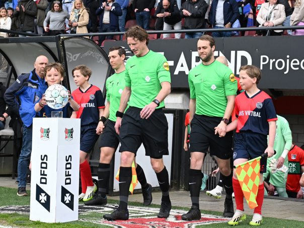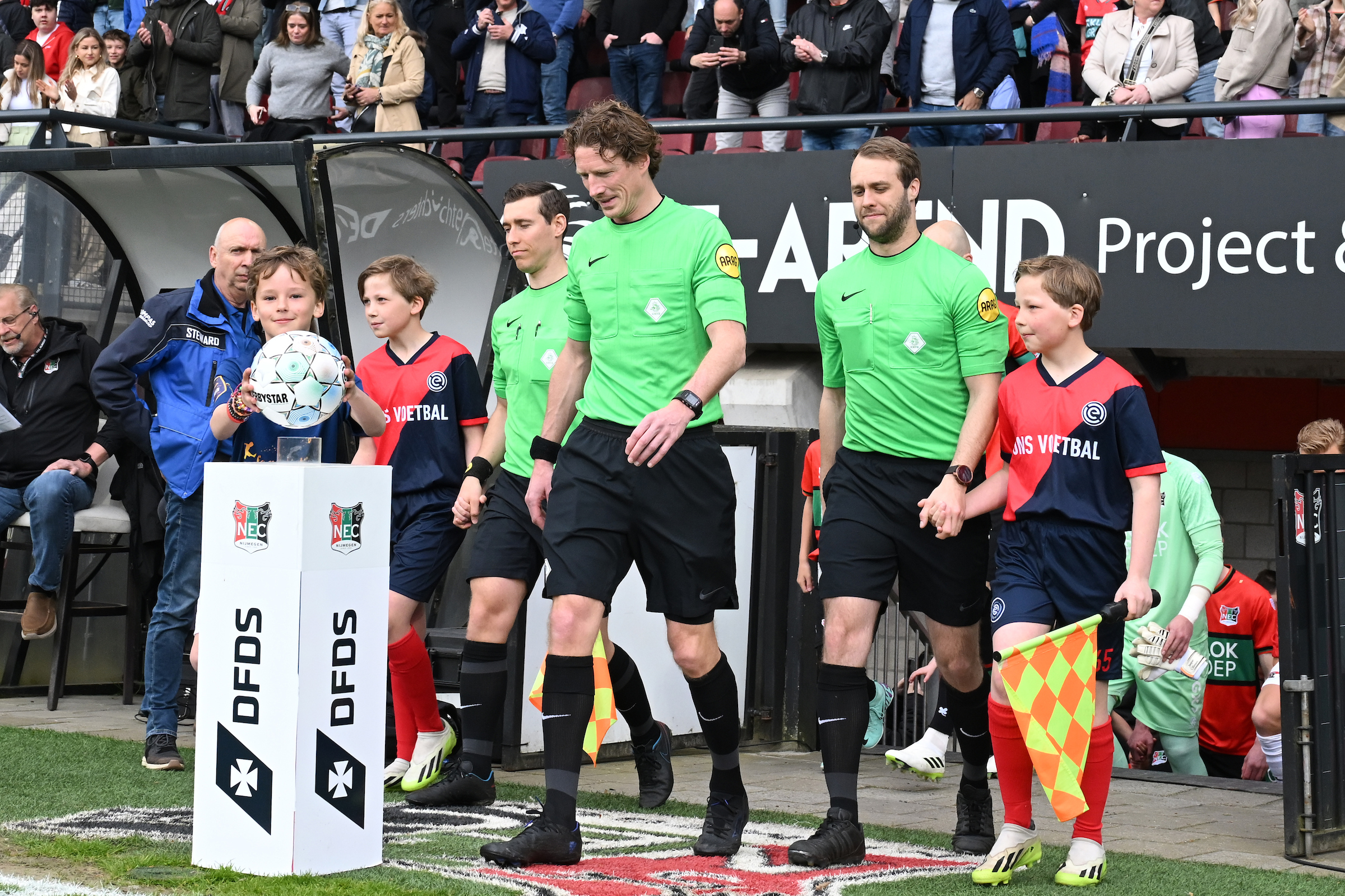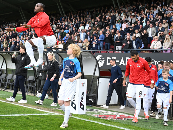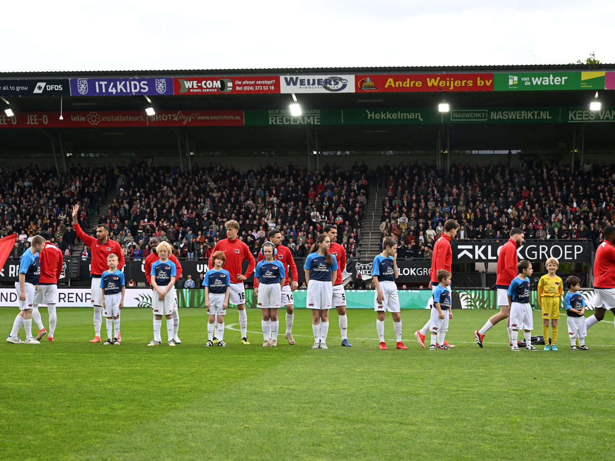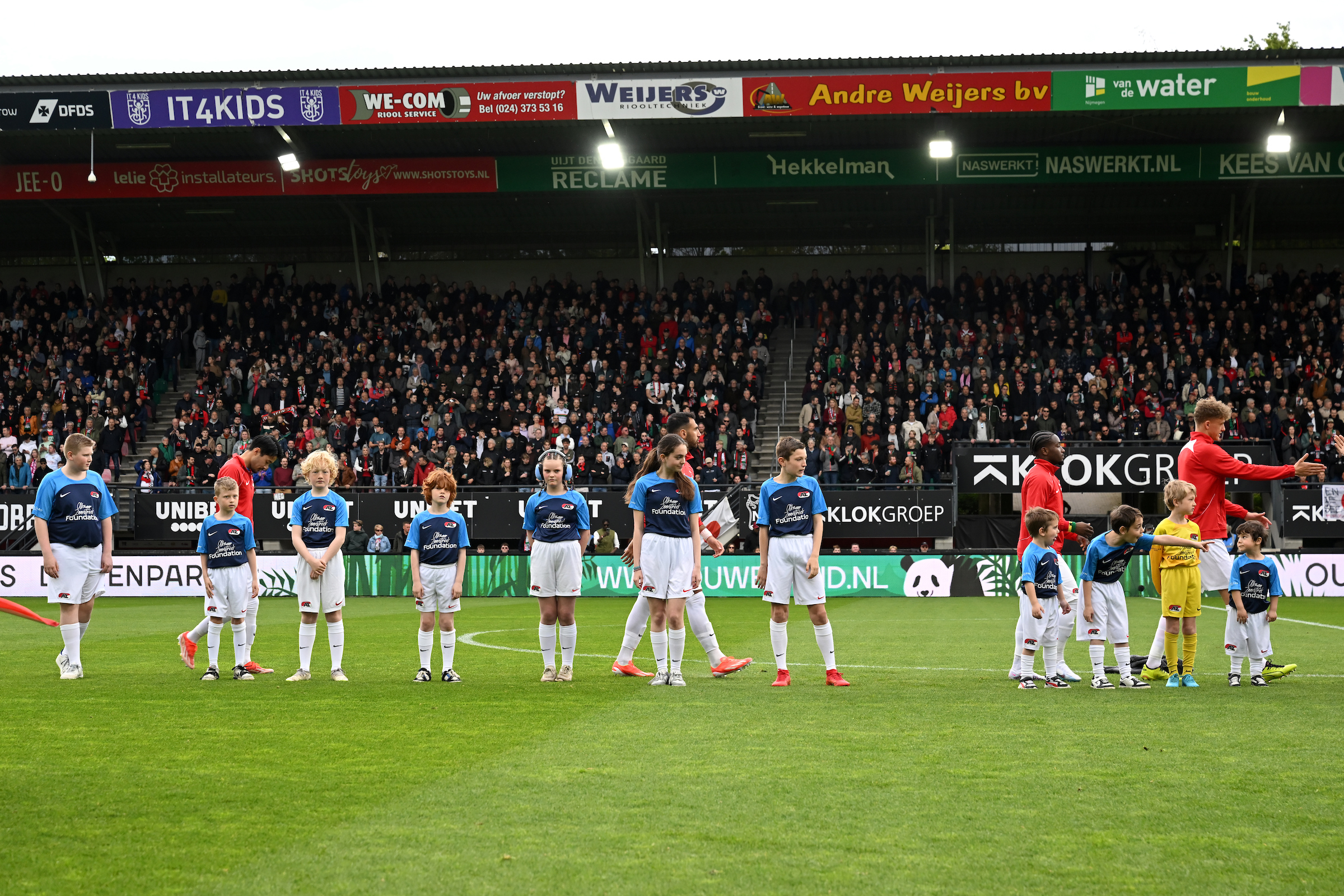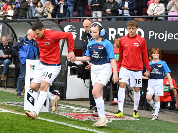 NIJMEGEN- Voorafgaand aan de wedstrijd van NEC tegen AZ mochten leden van De Waaghalzen & De AllstarZ mee het veld op als spelersescorte. De Waaghalzen & De AllstarZ bij de wedstrijd tussen NEC en AZ in beeld.