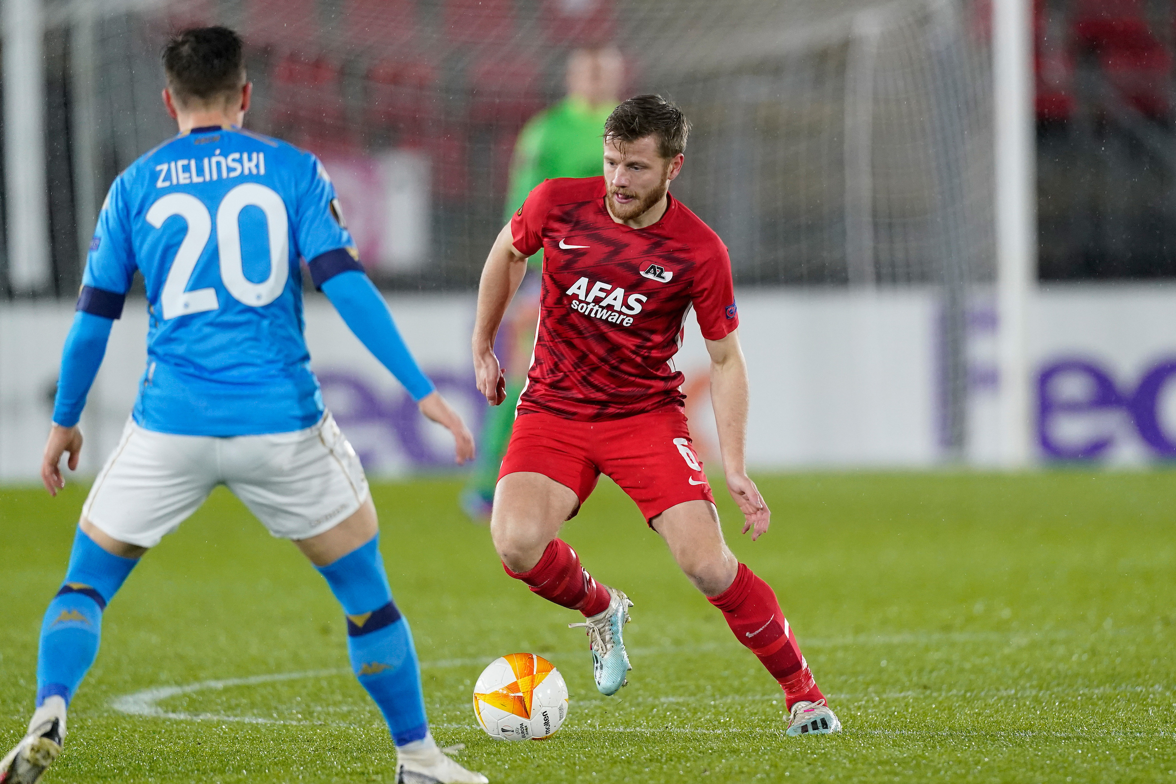 Fredrik Midtsjø voor AZ in 2020 tijdens de Europa League. (Foto: Ed van de Pol)