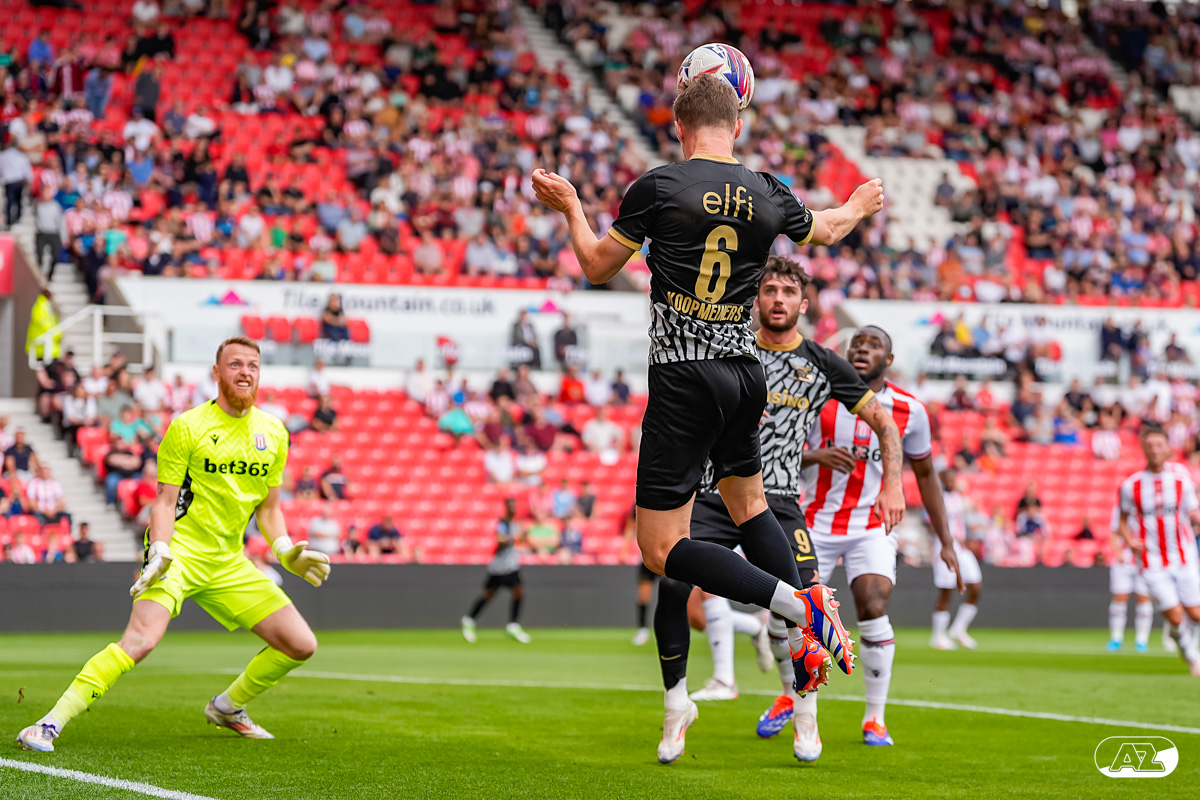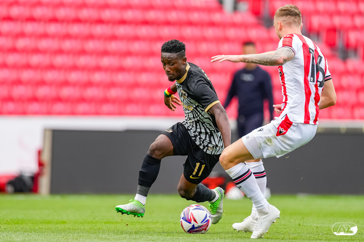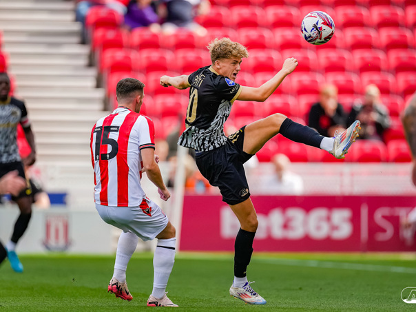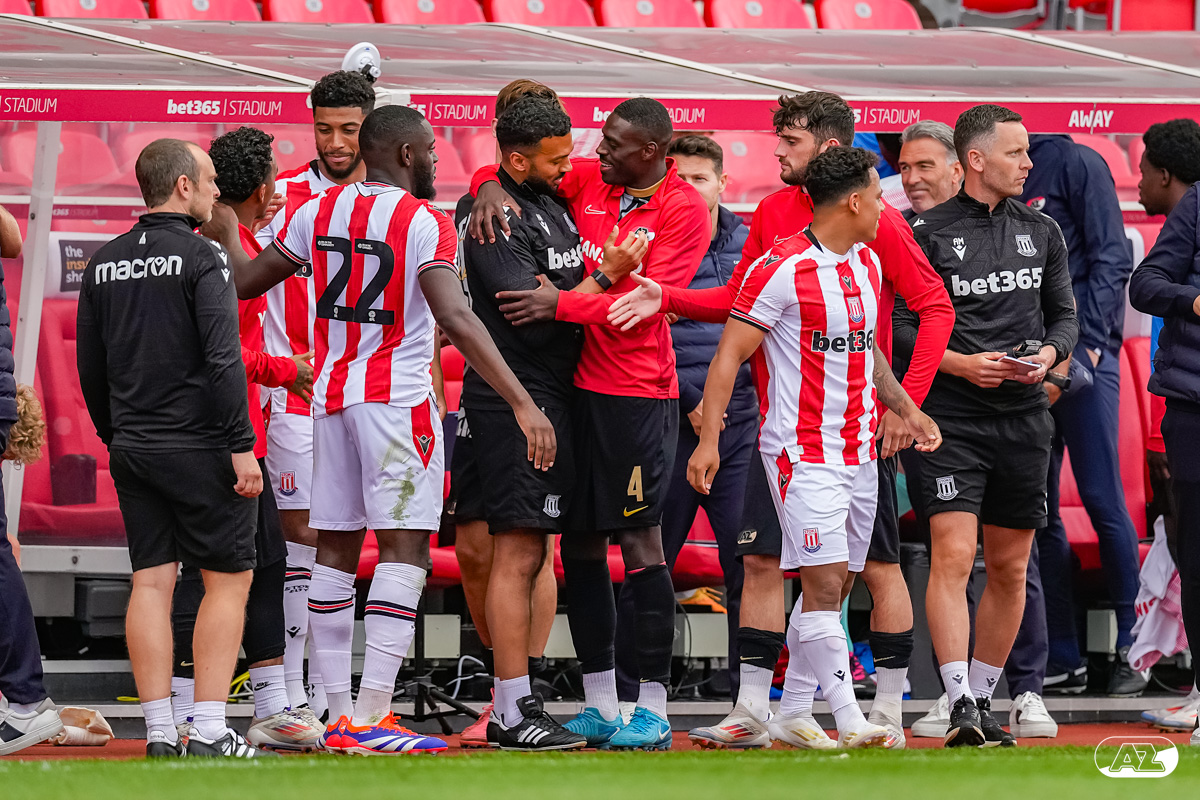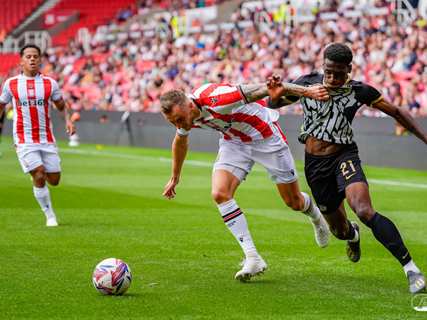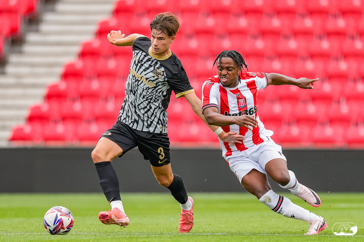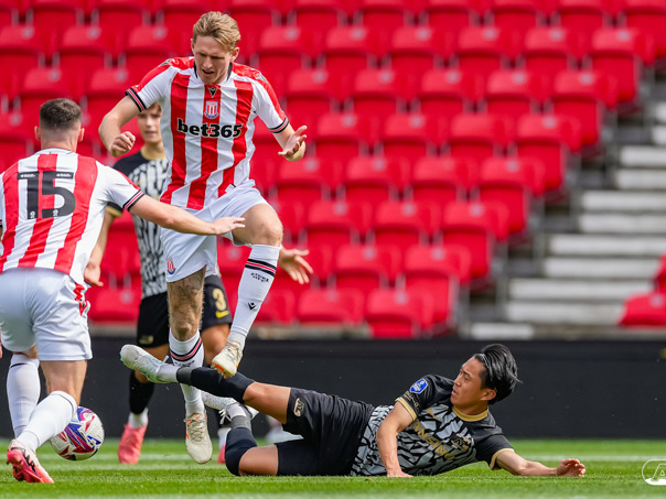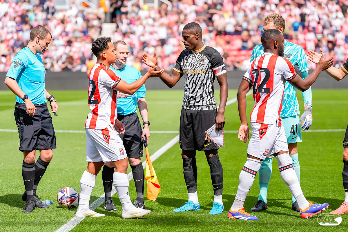 STOKE-ON-TRENT- AZ boekte zaterdagmiddag een overwinning op het Engelse Stoke City FC. In het Bet365 Stadium maakte Troy Parrott de enige goal van de wedstrijd, wat resulteerde in een 0-1 uitzege. Het duel met The Potters was voor de club uit Alkmaar de laatste wedstrijd in de voorbereiding op het nieuwe seizoen. De confrontatie in beeld. (Foto's: Ed van de Pol)