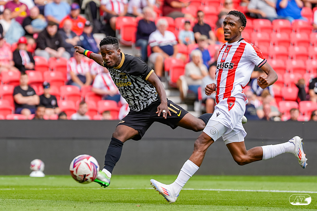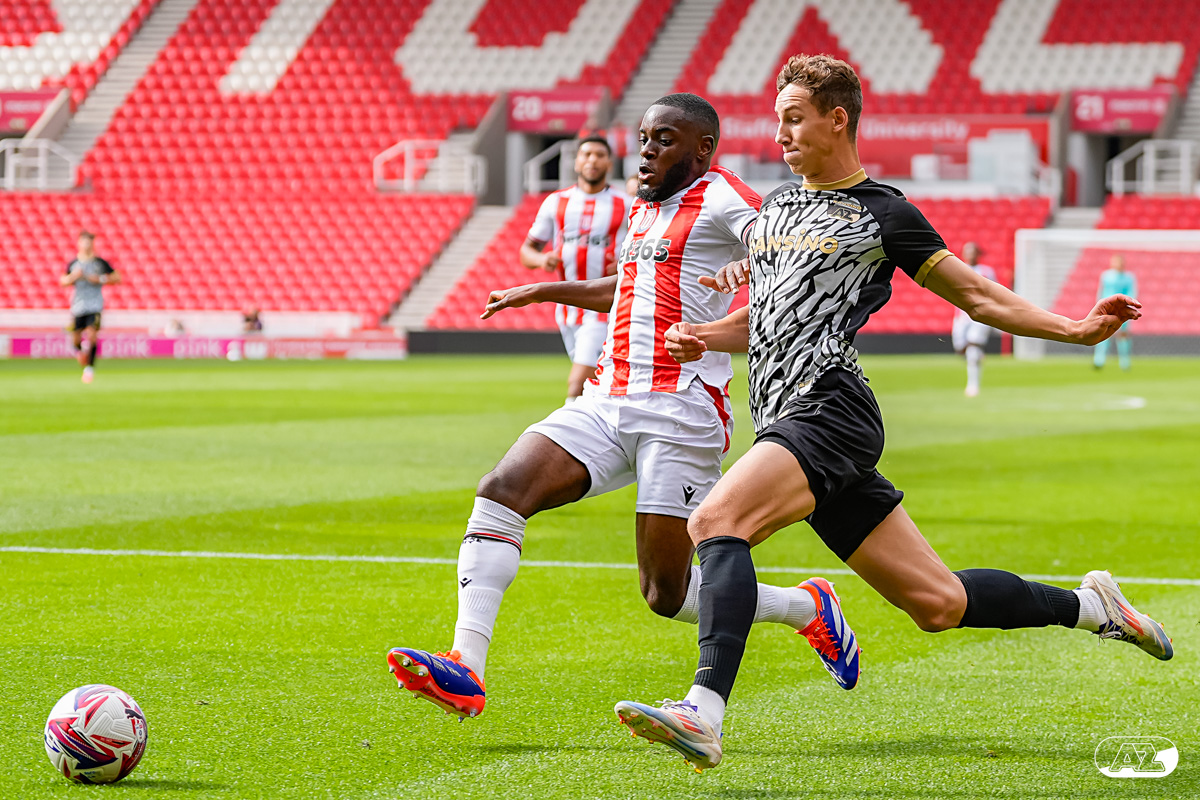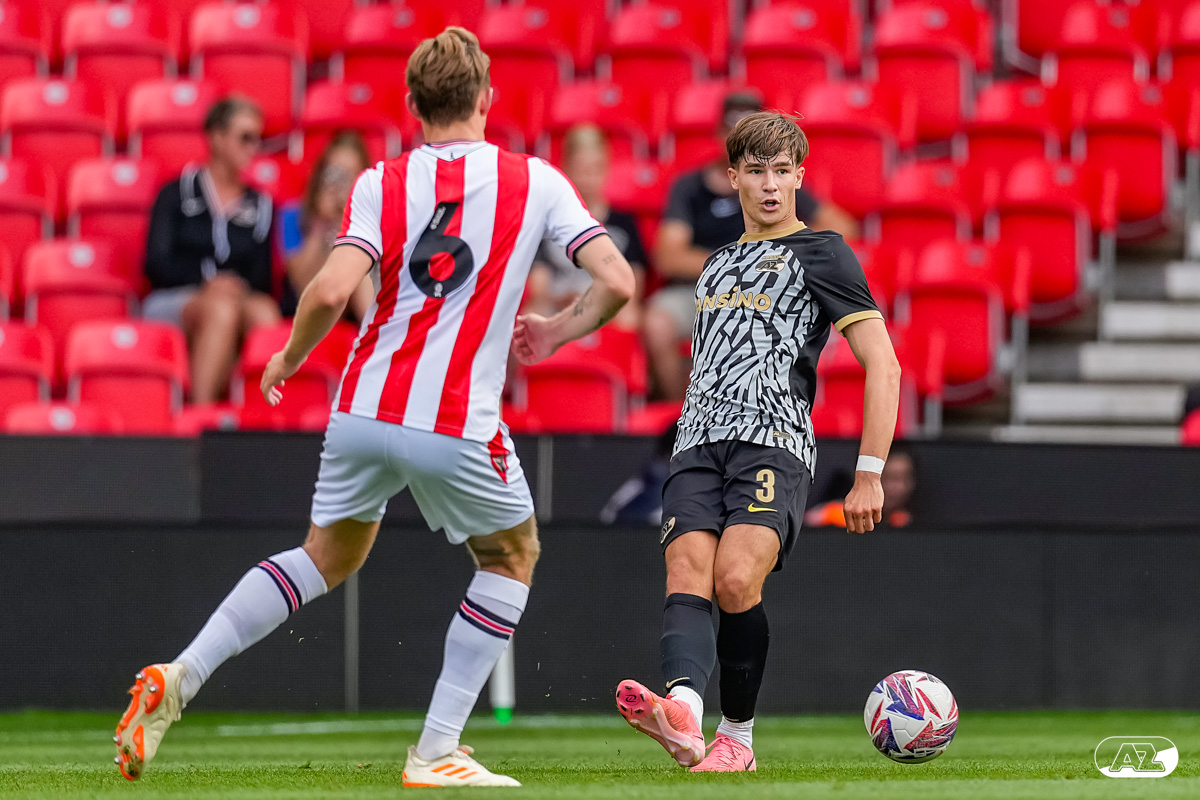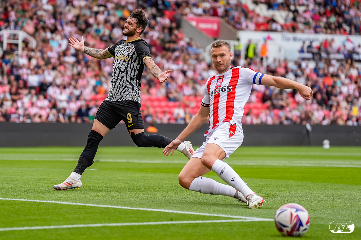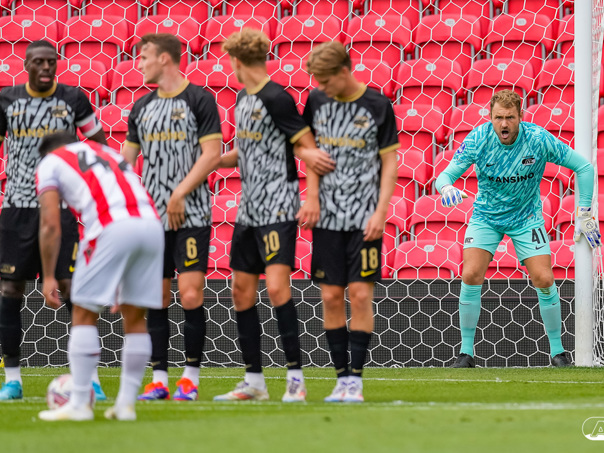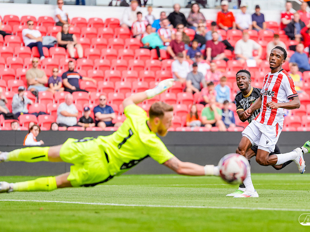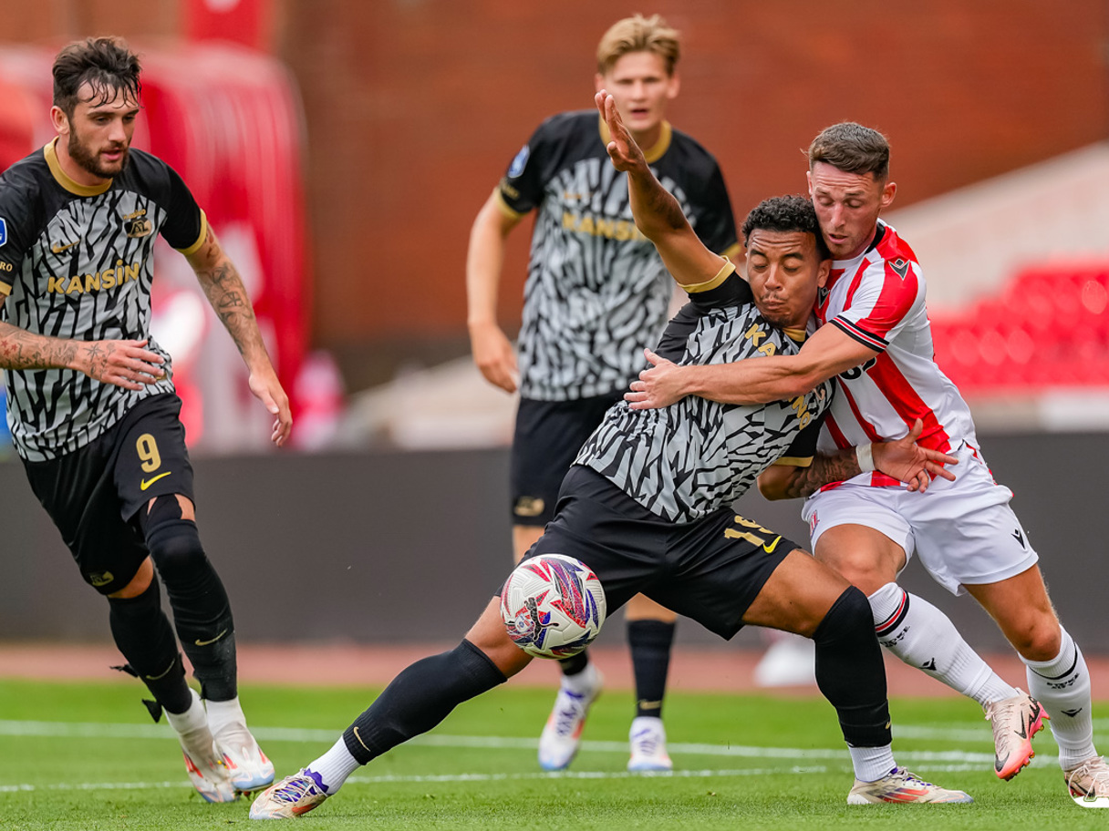 STOKE-ON-TRENT- AZ boekte zaterdagmiddag een overwinning op het Engelse Stoke City FC. In het Bet365 Stadium maakte Troy Parrott de enige goal van de wedstrijd, wat resulteerde in een 0-1 uitzege. Het duel met The Potters was voor de club uit Alkmaar de laatste wedstrijd in de voorbereiding op het nieuwe seizoen. De confrontatie in beeld. (Foto's: Ed van de Pol)