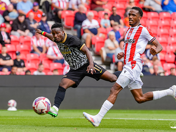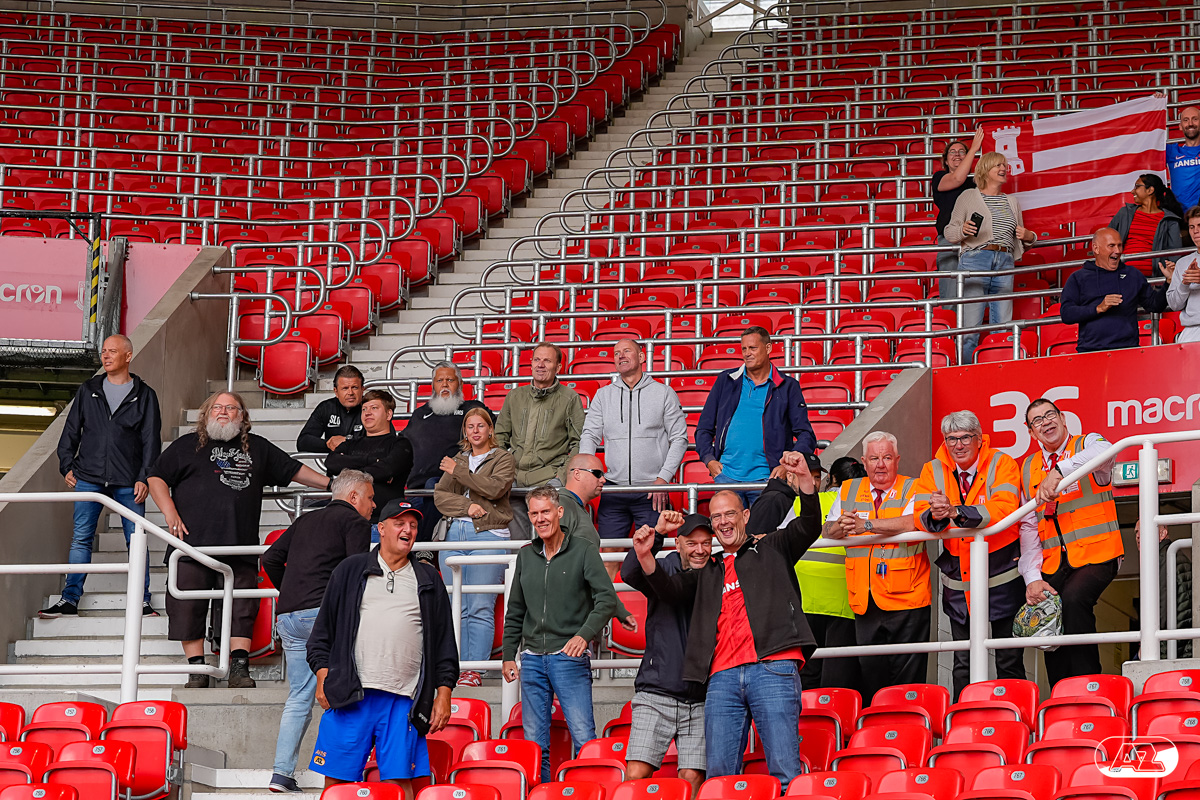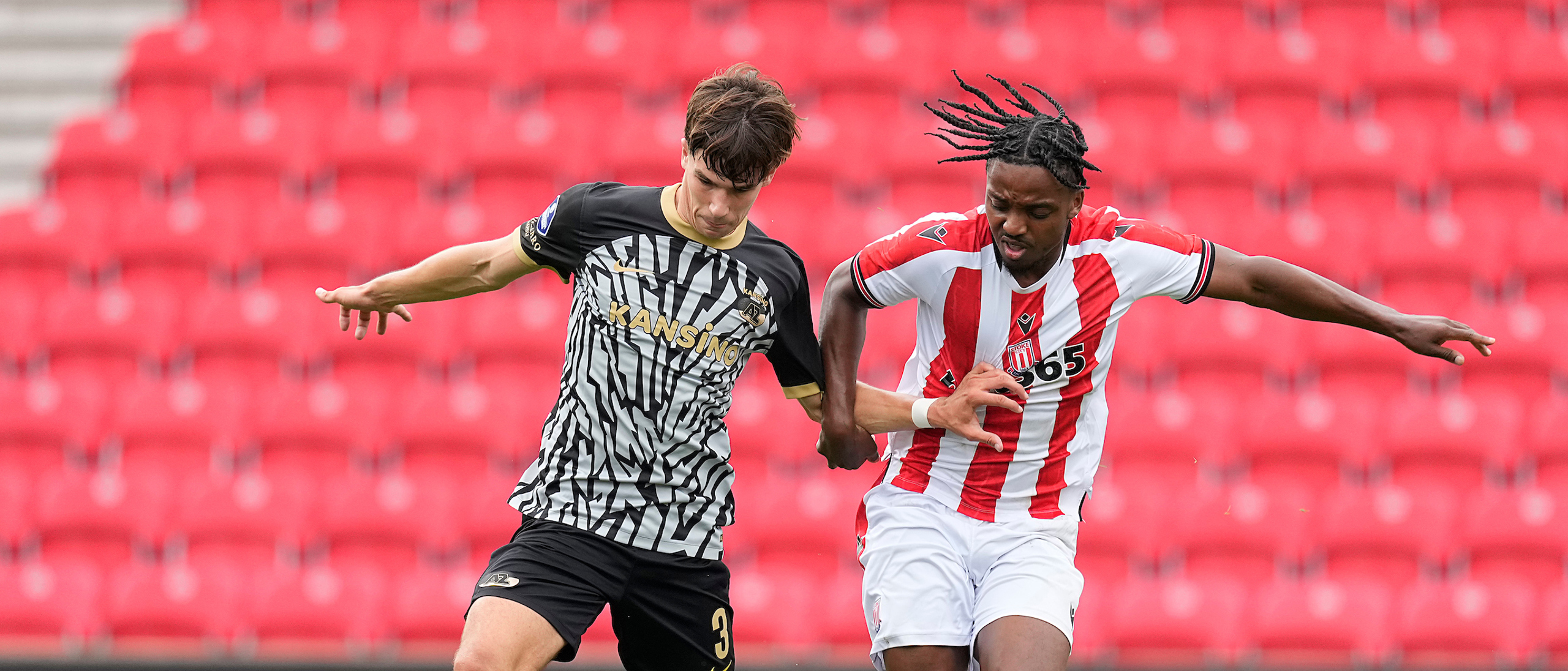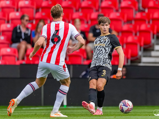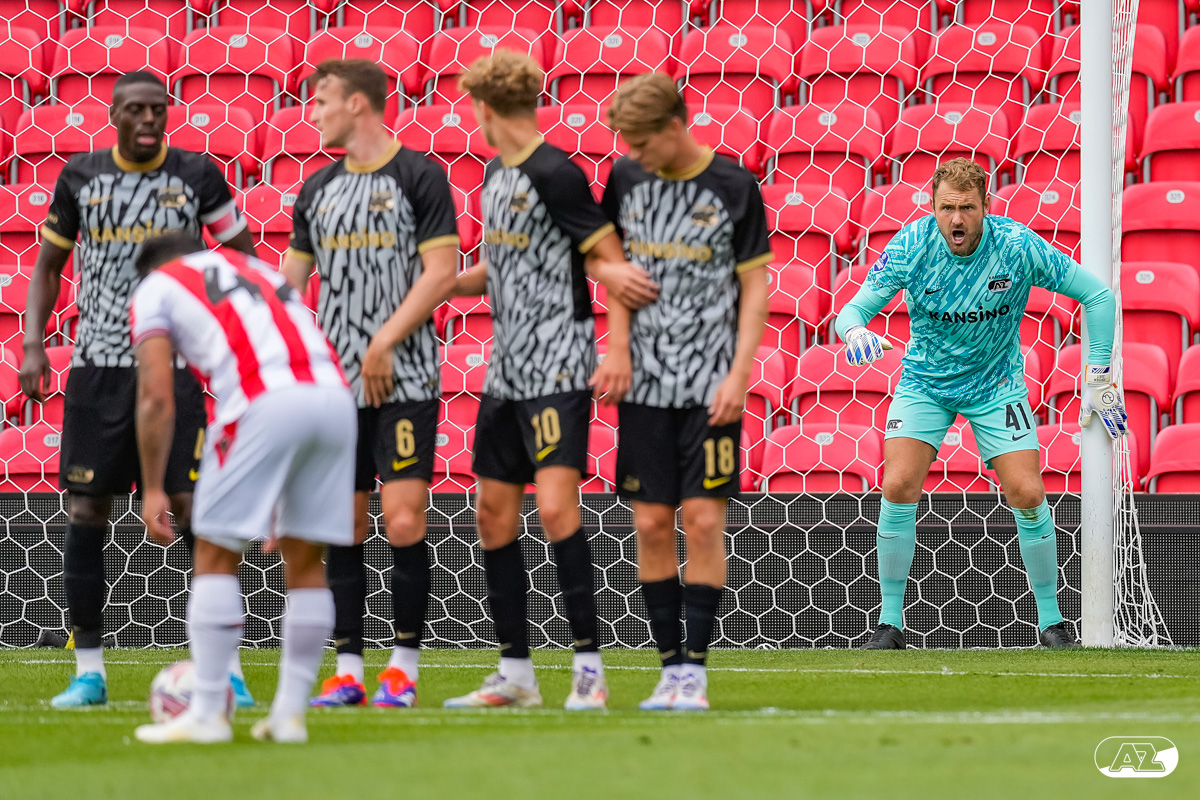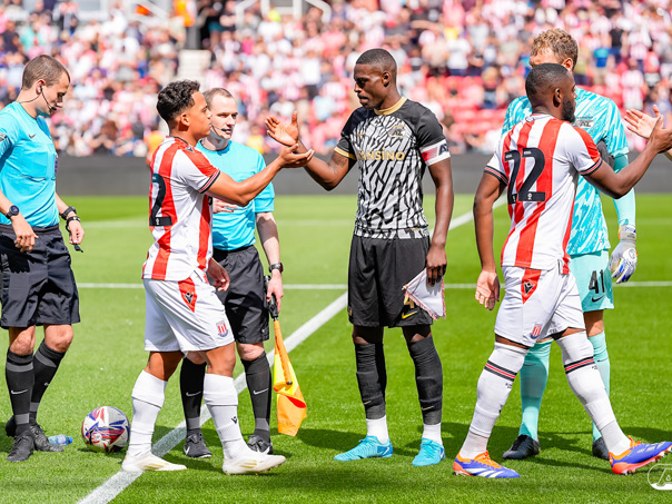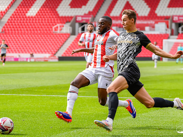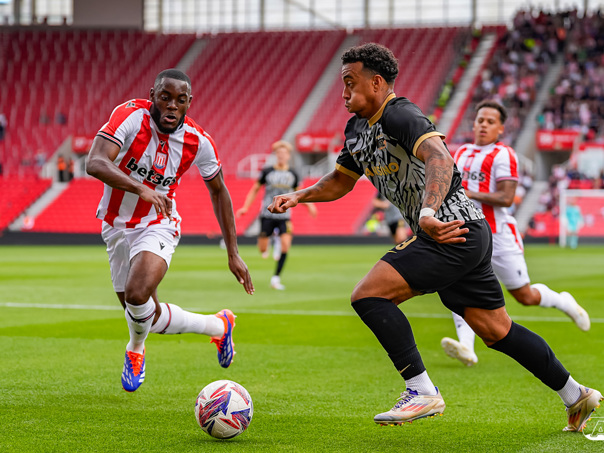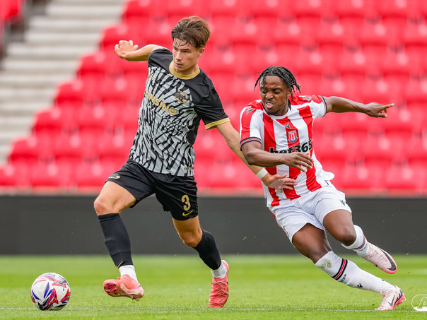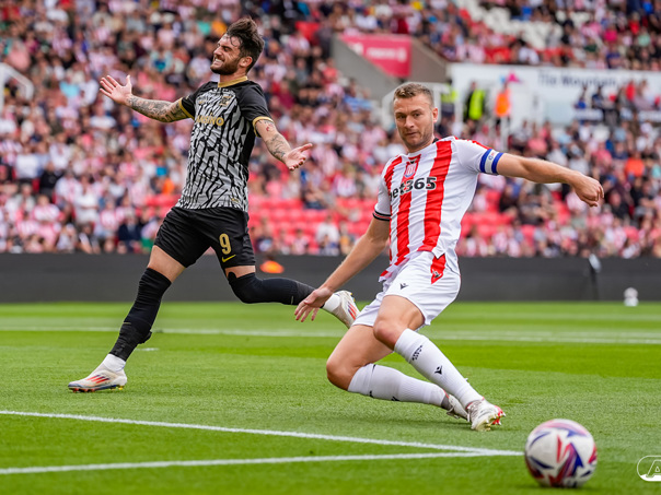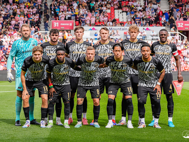 STOKE-ON-TRENT- AZ boekte zaterdagmiddag een overwinning op het Engelse Stoke City FC. In het Bet365 Stadium maakte Troy Parrott de enige goal van de wedstrijd, wat resulteerde in een 0-1 uitzege. Het duel met The Potters was voor de club uit Alkmaar de laatste wedstrijd in de voorbereiding op het nieuwe seizoen. De confrontatie in beeld. (Foto's: Ed van de Pol)