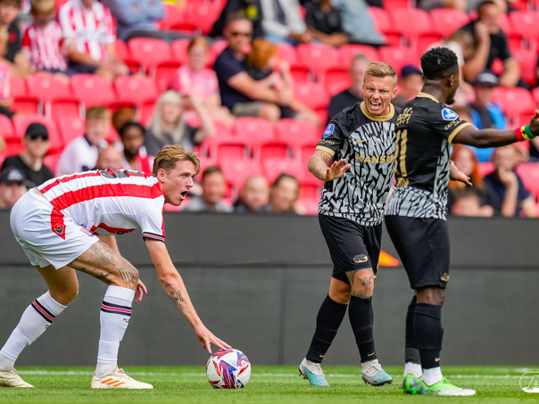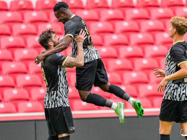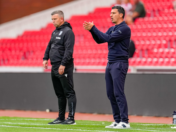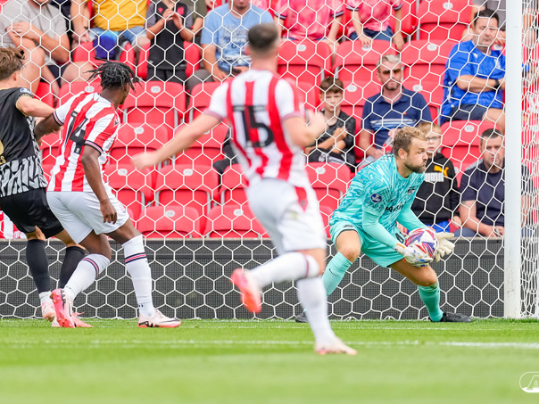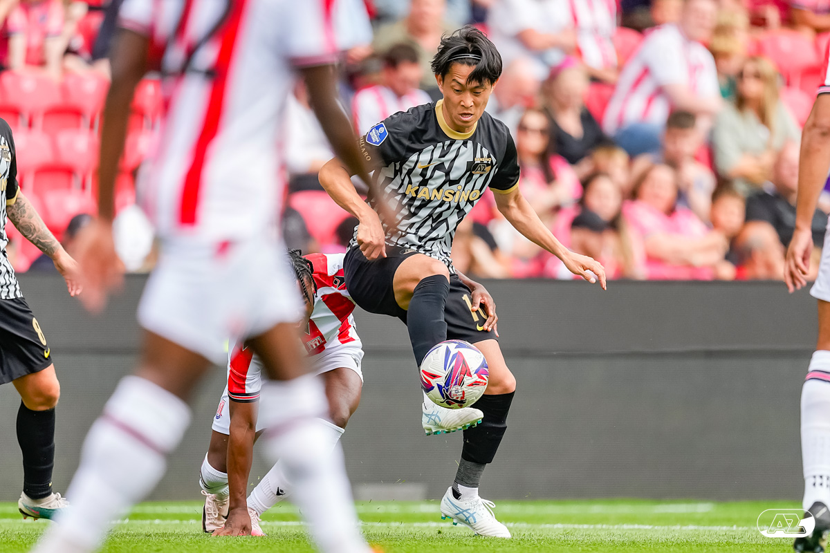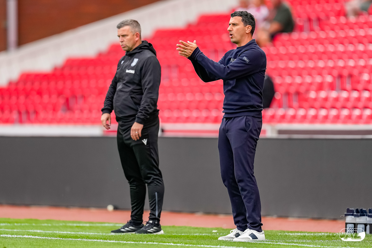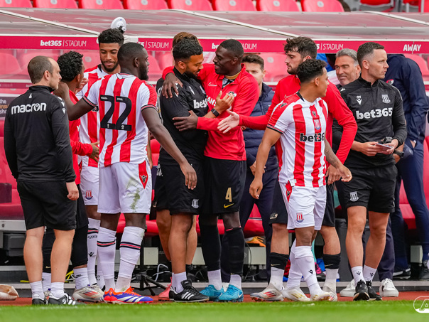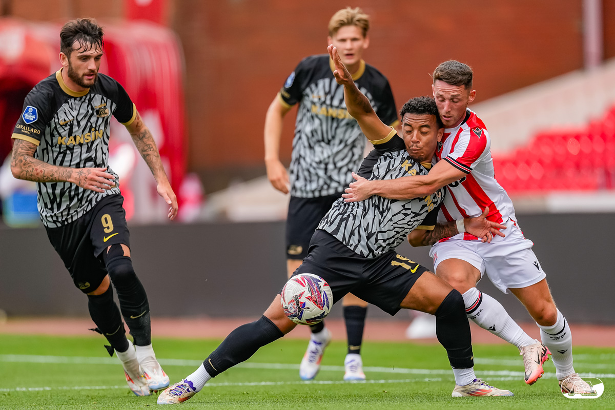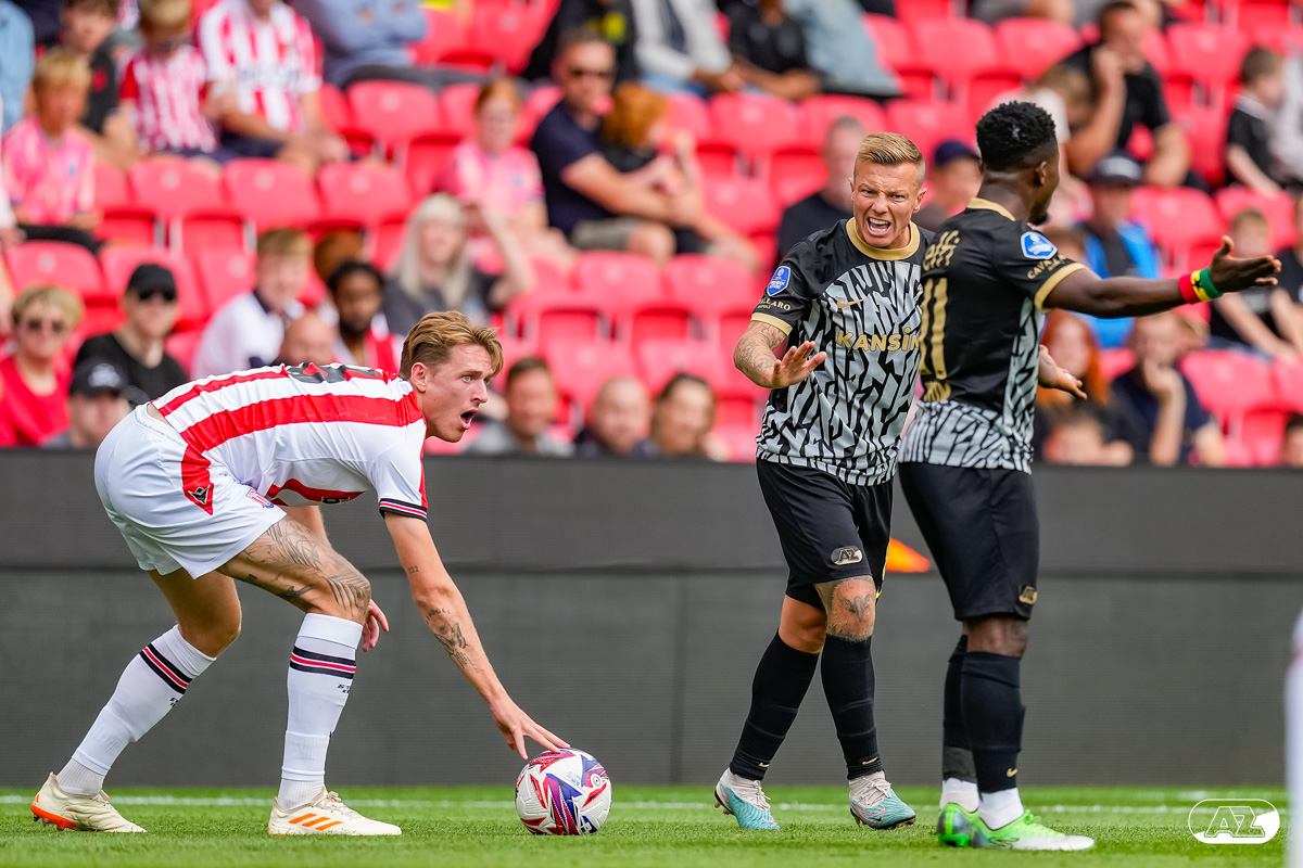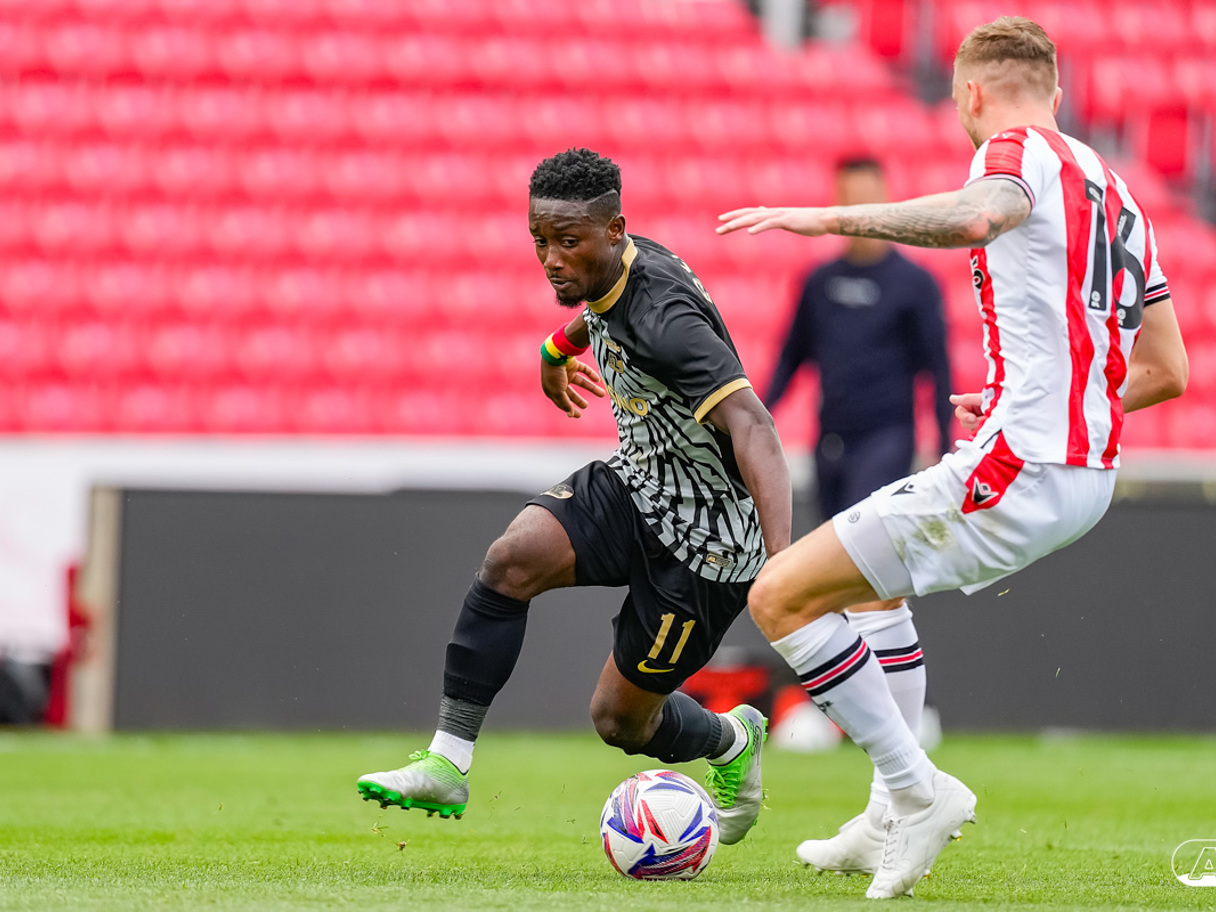 STOKE-ON-TRENT- AZ boekte zaterdagmiddag een overwinning op het Engelse Stoke City FC. In het Bet365 Stadium maakte Troy Parrott de enige goal van de wedstrijd, wat resulteerde in een 0-1 uitzege. Het duel met The Potters was voor de club uit Alkmaar de laatste wedstrijd in de voorbereiding op het nieuwe seizoen. De confrontatie in beeld. (Foto's: Ed van de Pol)