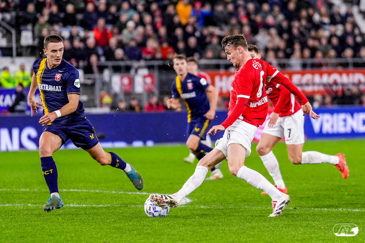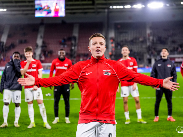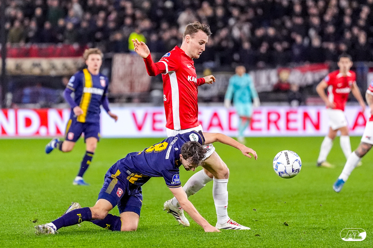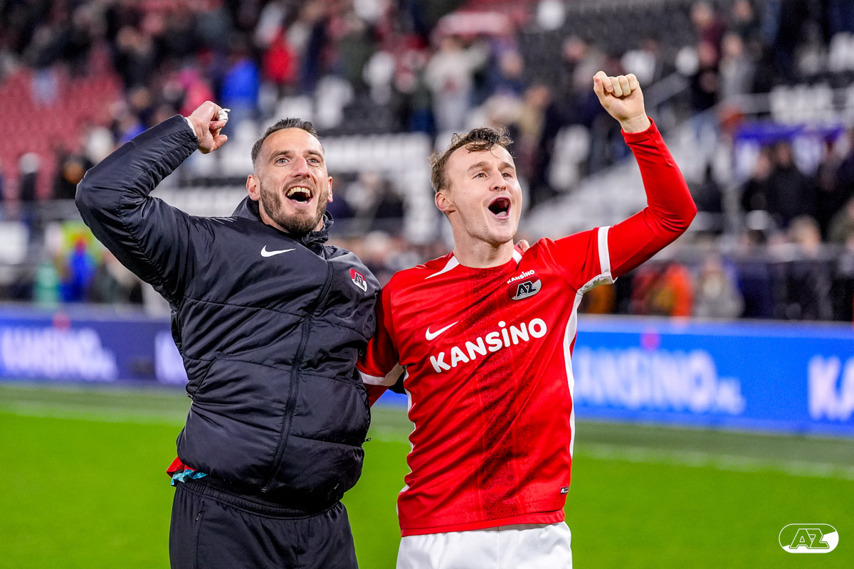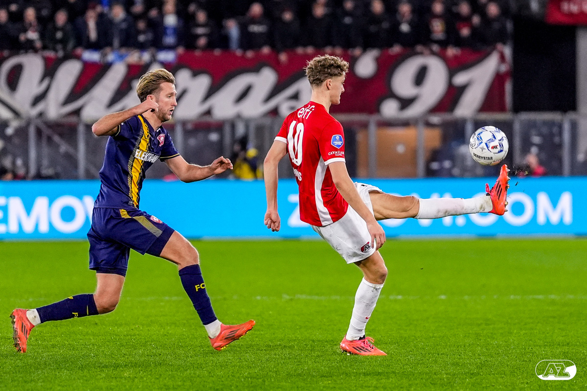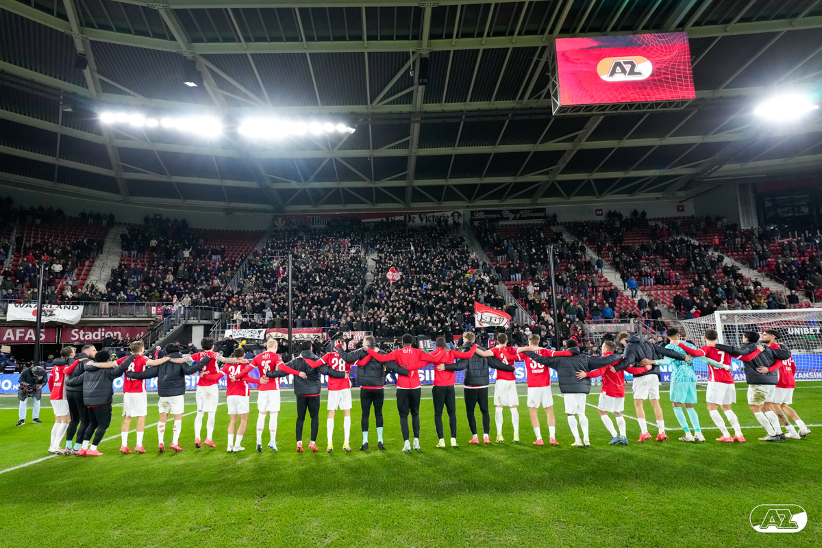 ALKMAAR- AZ boekte zaterdagavond een overwinning op FC Twente. De ploeg van Maarten Martens was na iets meer dan negentig minuten spelen met 1-0 te sterk voor de bezoekers uit Enschede. In het AFAS Stadion werd het winnende doelpunt gescoord door spits Troy Parrott. De zege in beeld. (Foto's: Ed van de Pol).
