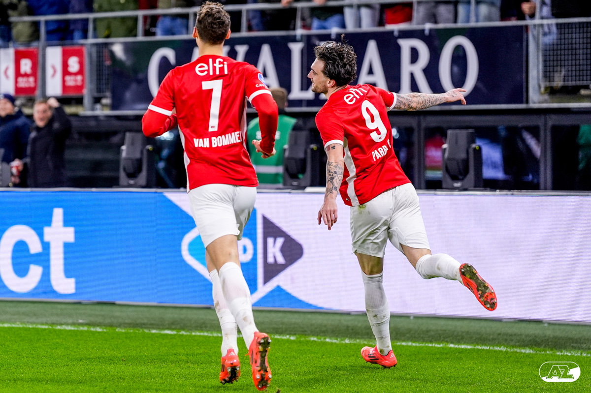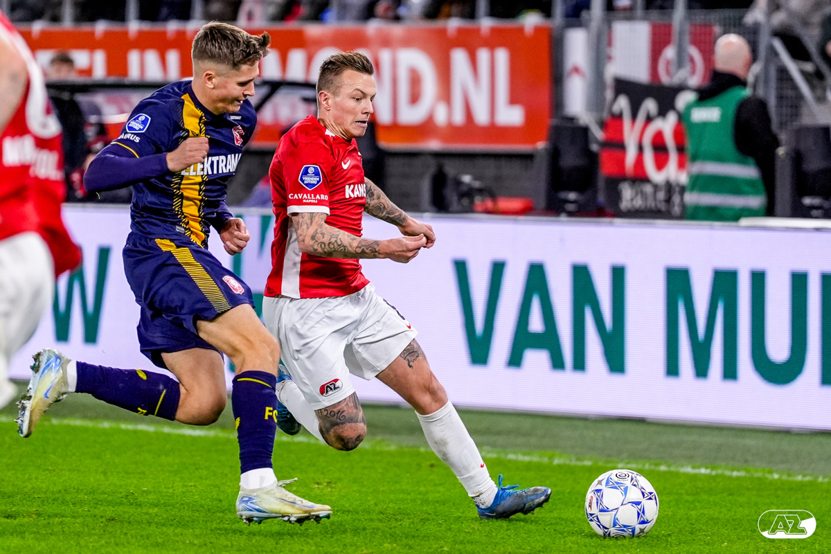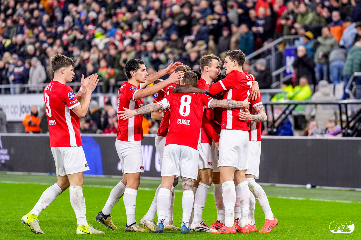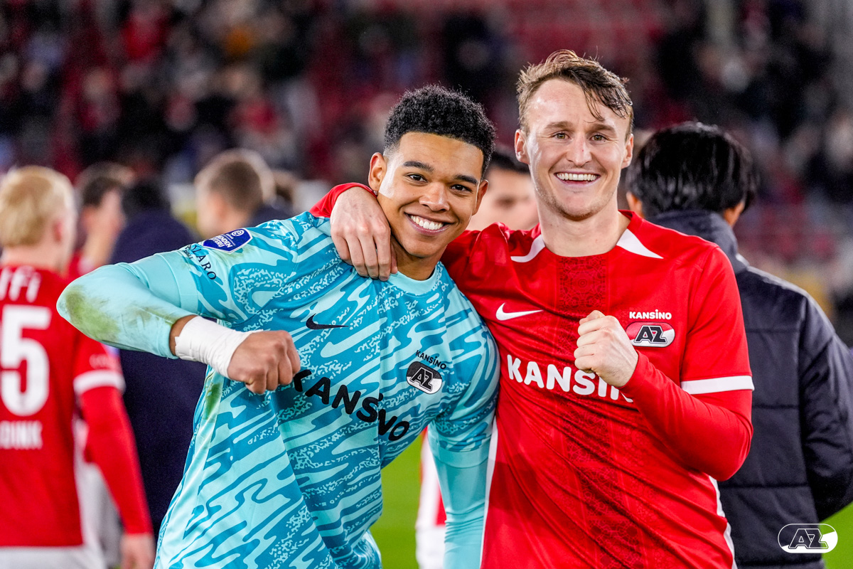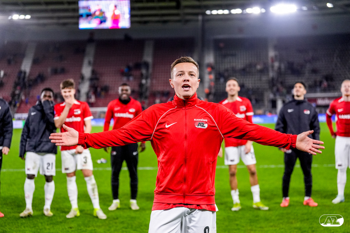 ALKMAAR- AZ boekte zaterdagavond een overwinning op FC Twente. De ploeg van Maarten Martens was na iets meer dan negentig minuten spelen met 1-0 te sterk voor de bezoekers uit Enschede. In het AFAS Stadion werd het winnende doelpunt gescoord door spits Troy Parrott. De zege in beeld. (Foto's: Ed van de Pol).