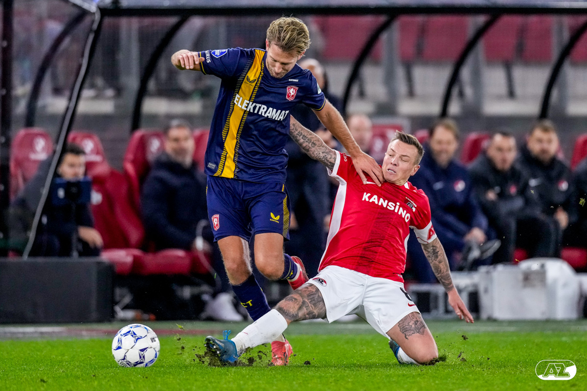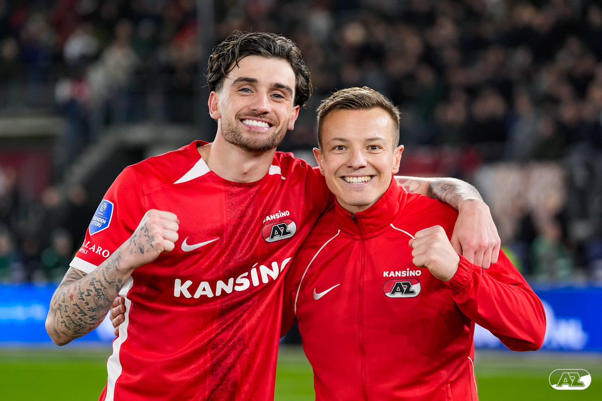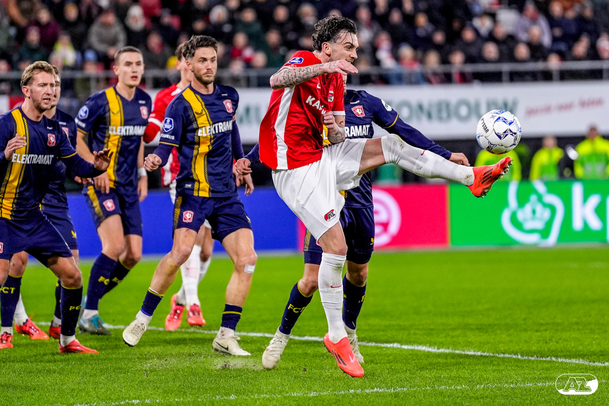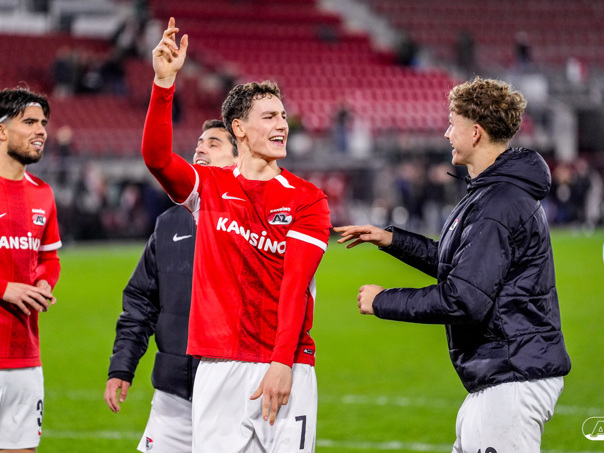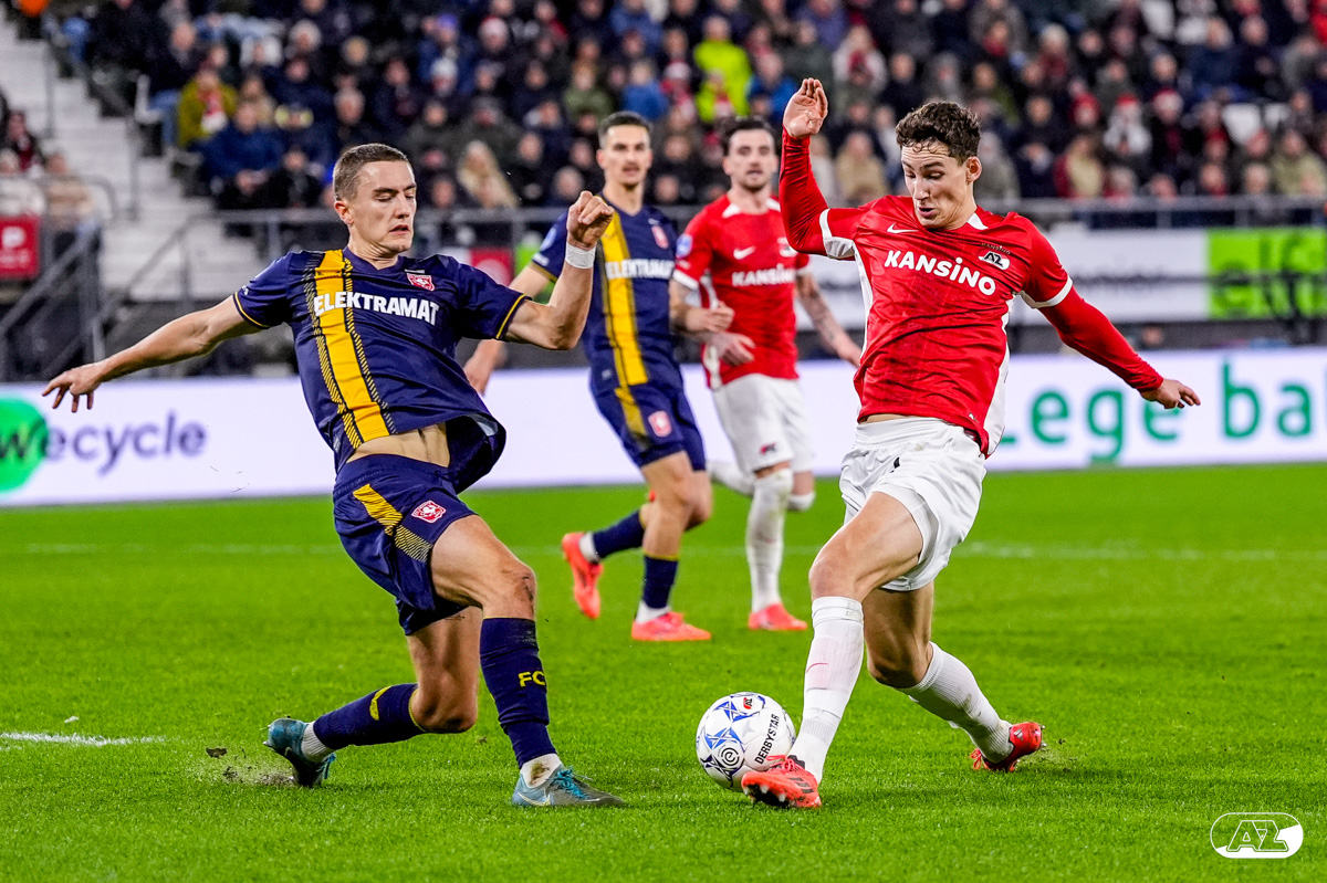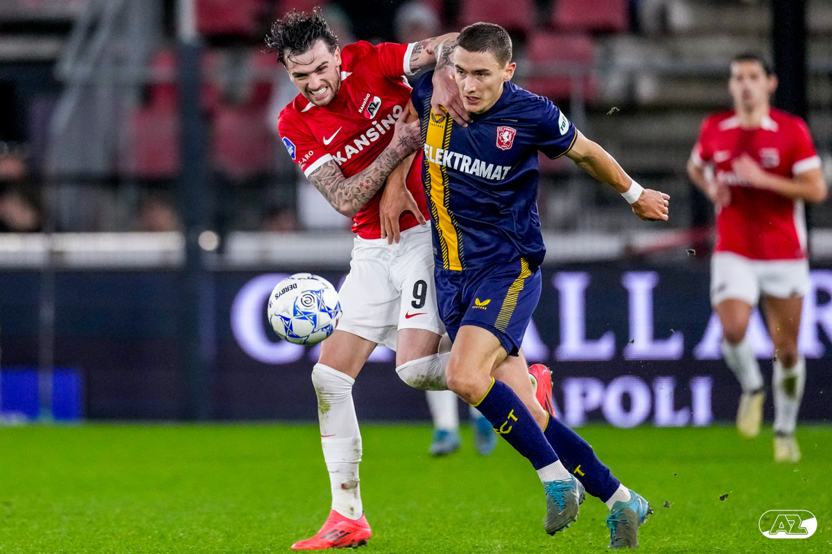 ALKMAAR- AZ boekte zaterdagavond een overwinning op FC Twente. De ploeg van Maarten Martens was na iets meer dan negentig minuten spelen met 1-0 te sterk voor de bezoekers uit Enschede. In het AFAS Stadion werd het winnende doelpunt gescoord door spits Troy Parrott. De zege in beeld. (Foto's: Ed van de Pol).
