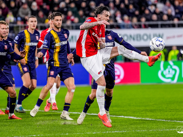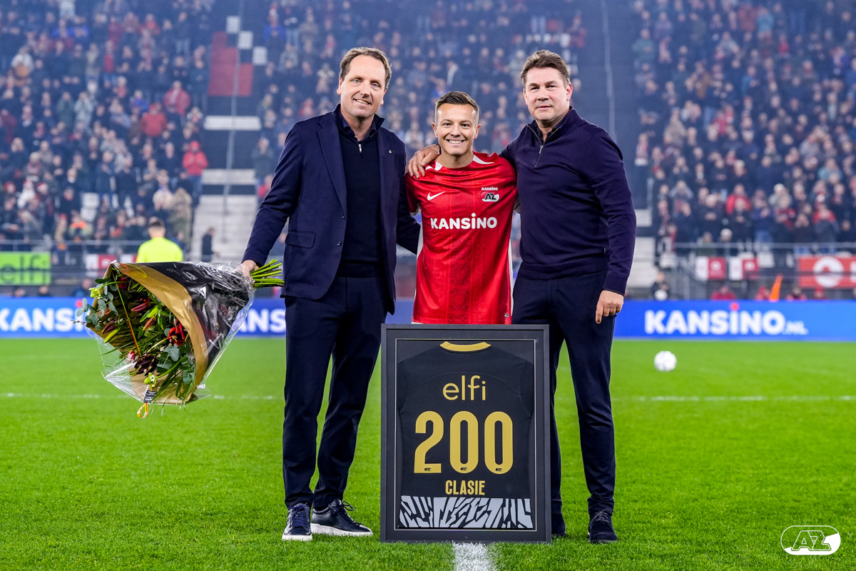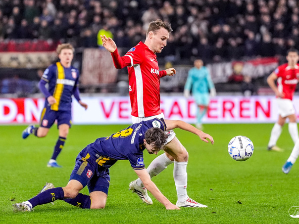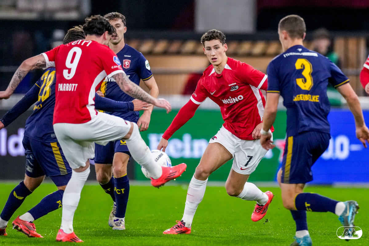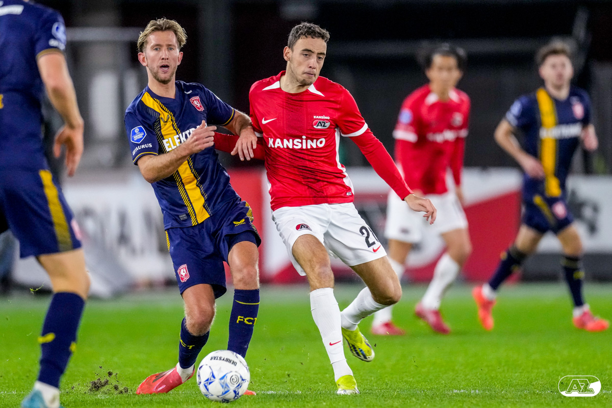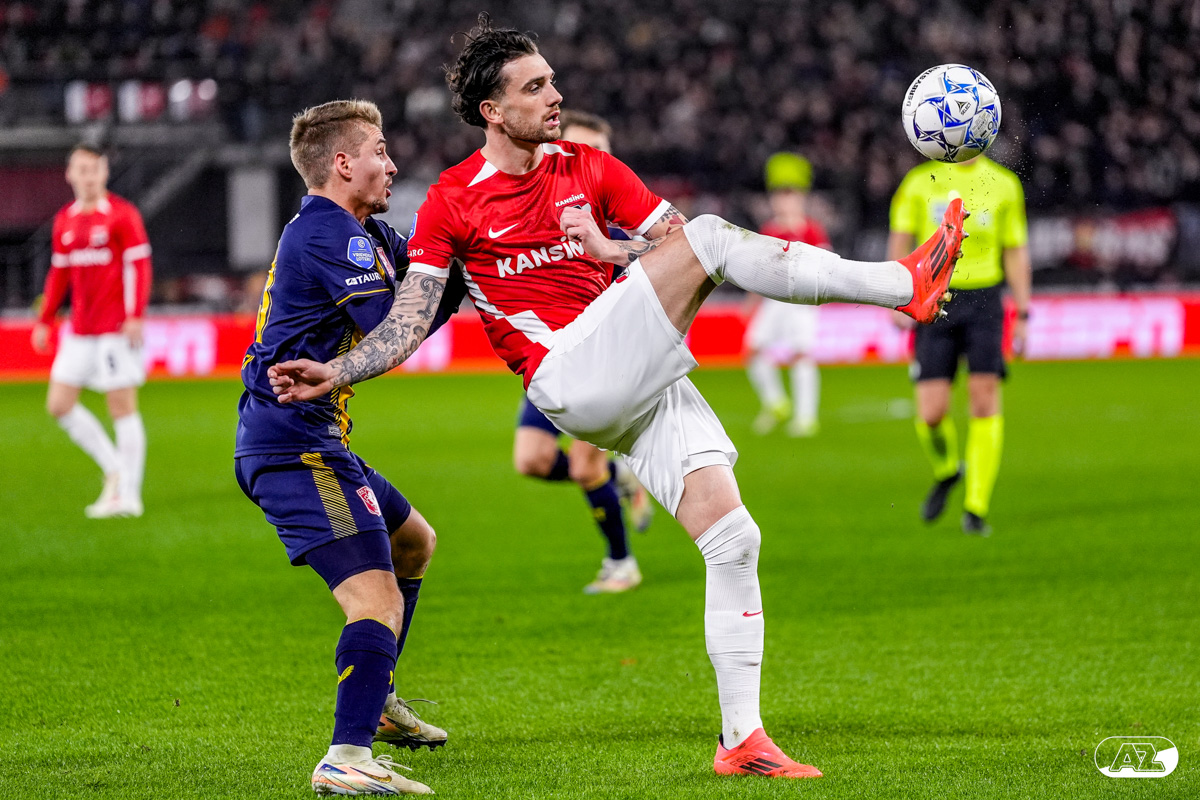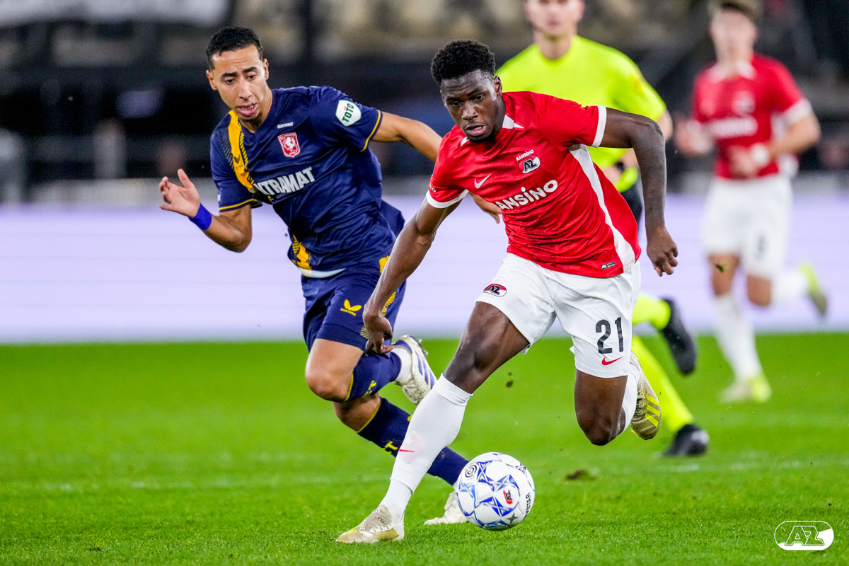 ALKMAAR- AZ boekte zaterdagavond een overwinning op FC Twente. De ploeg van Maarten Martens was na iets meer dan negentig minuten spelen met 1-0 te sterk voor de bezoekers uit Enschede. In het AFAS Stadion werd het winnende doelpunt gescoord door spits Troy Parrott. De zege in beeld. (Foto's: Ed van de Pol).
