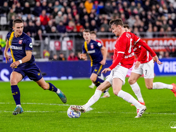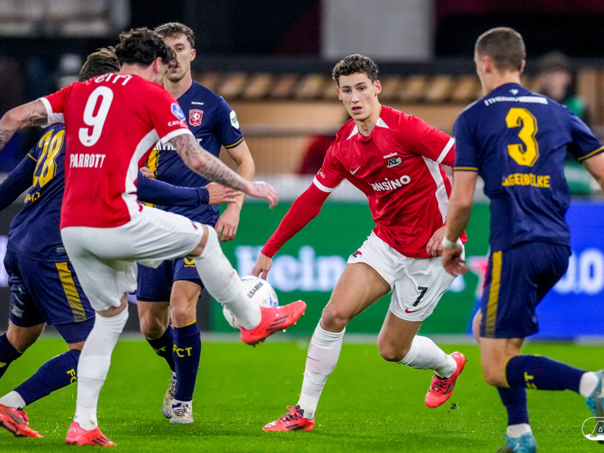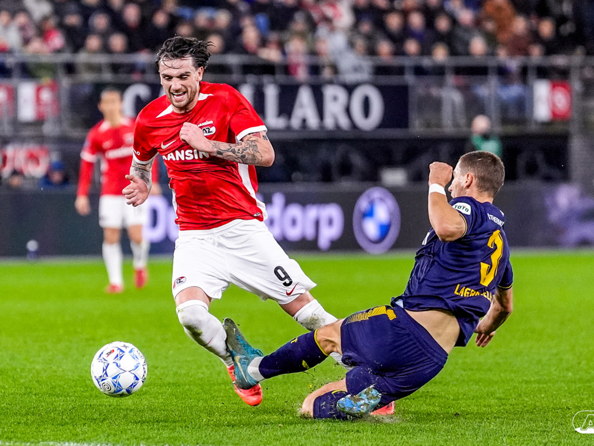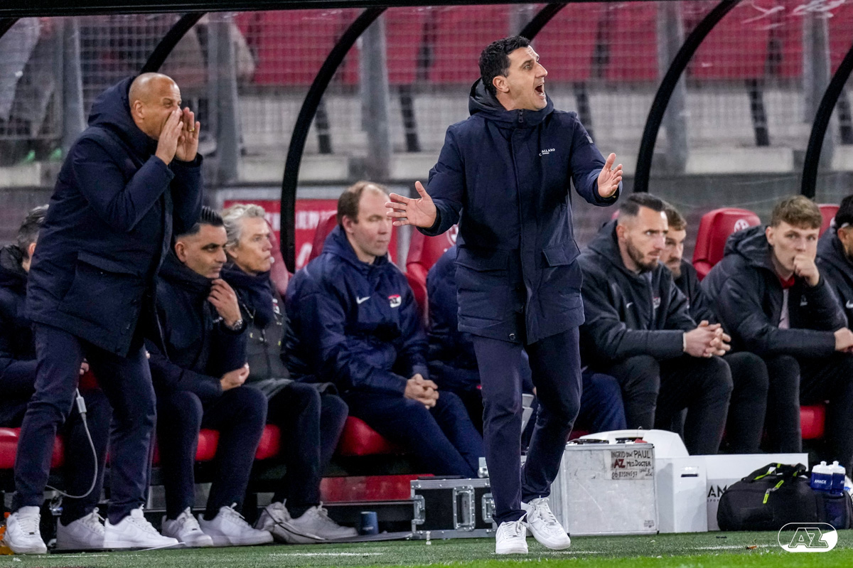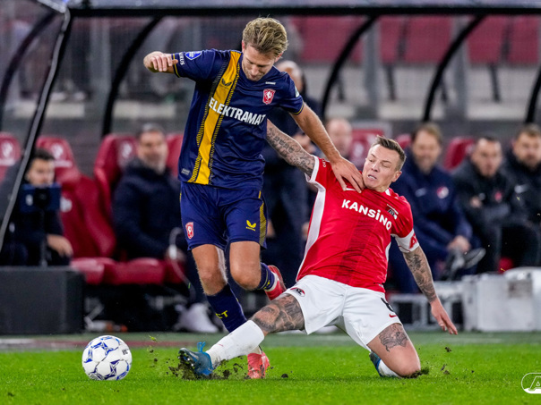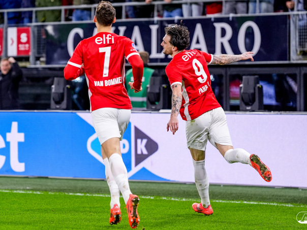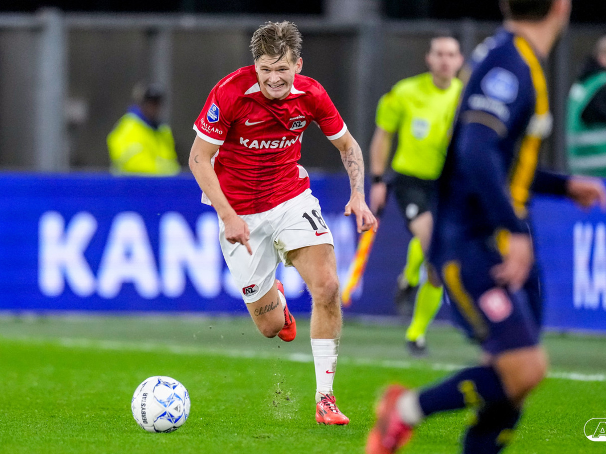 ALKMAAR- AZ boekte zaterdagavond een overwinning op FC Twente. De ploeg van Maarten Martens was na iets meer dan negentig minuten spelen met 1-0 te sterk voor de bezoekers uit Enschede. In het AFAS Stadion werd het winnende doelpunt gescoord door spits Troy Parrott. De zege in beeld. (Foto's: Ed van de Pol).